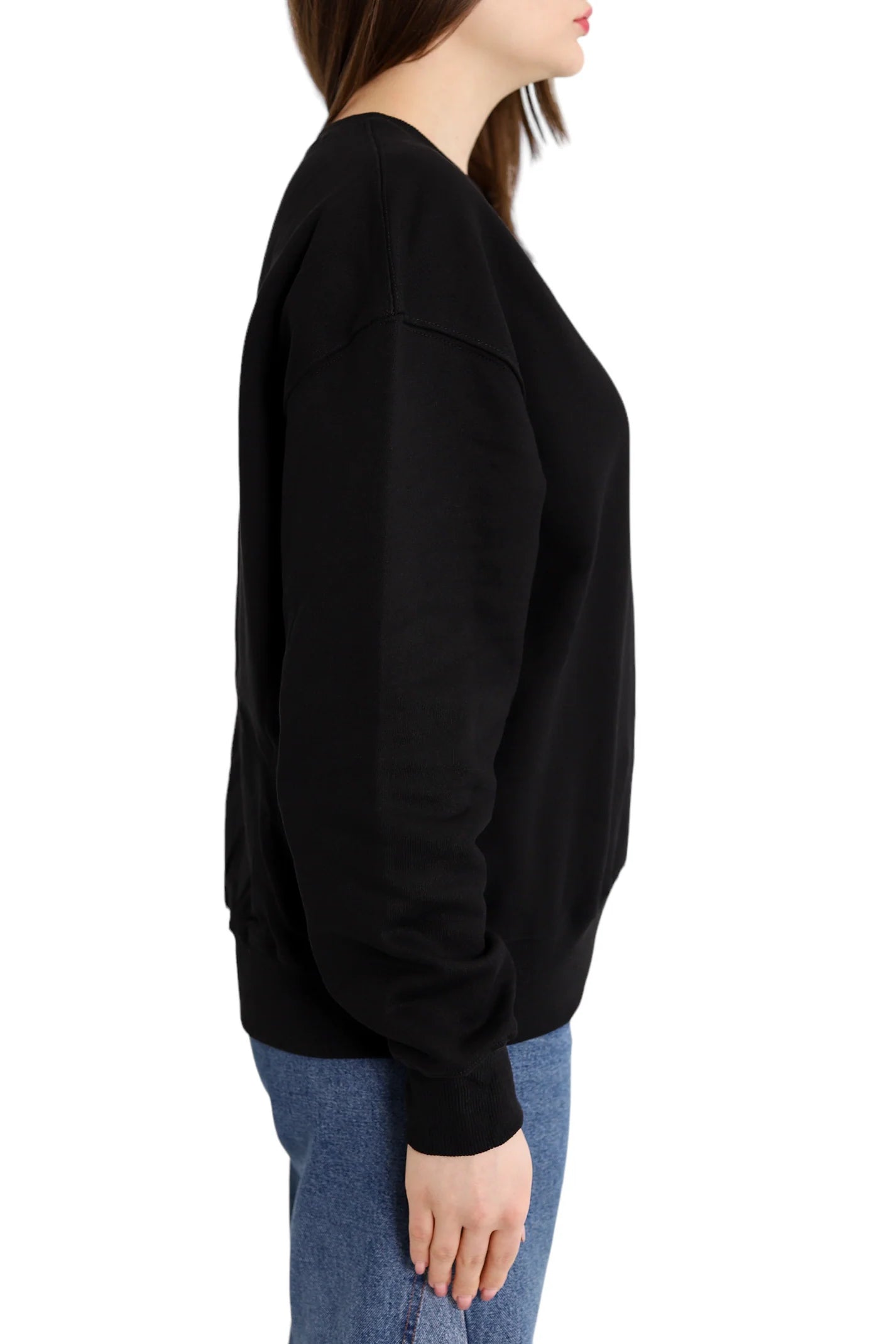 Світшот вільного крою від AMI Paris виготовлений з органічної бавовни. Має спущені плечі, ребристий виріз, манжети та поділ. Світшот доповнений аплікацією з логотипом бренду на грудях та мінімалістичним логотипом на спині
