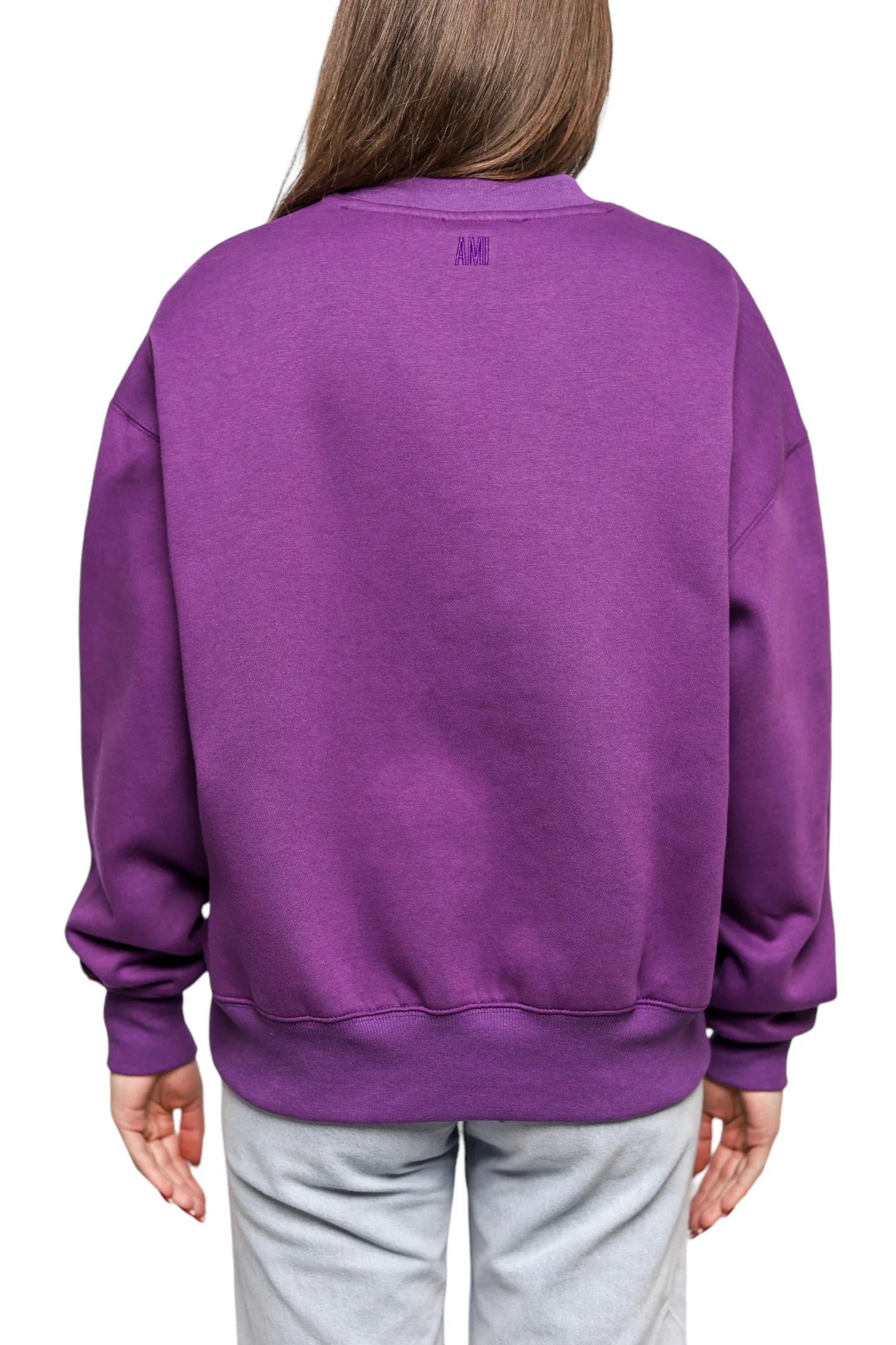 AMI Paris Oversized Cotton Fleece Sweatshirt Purple