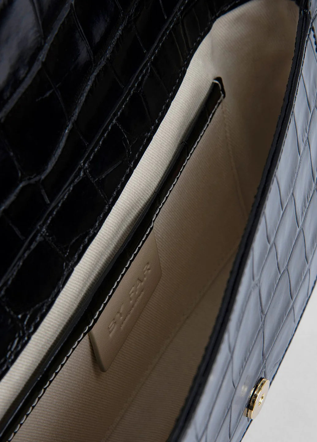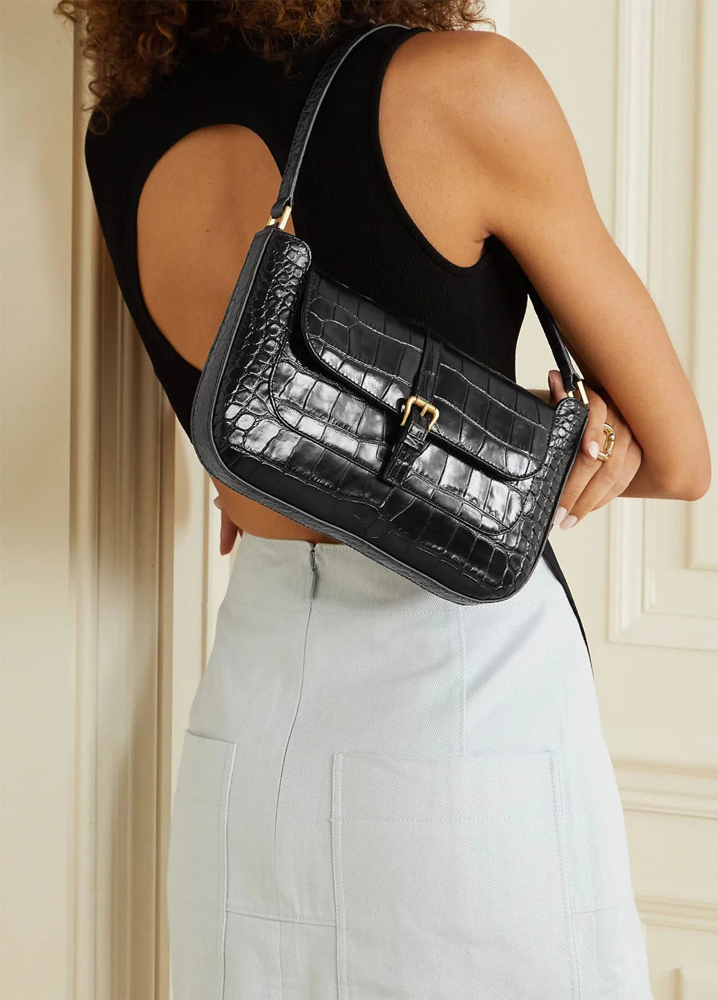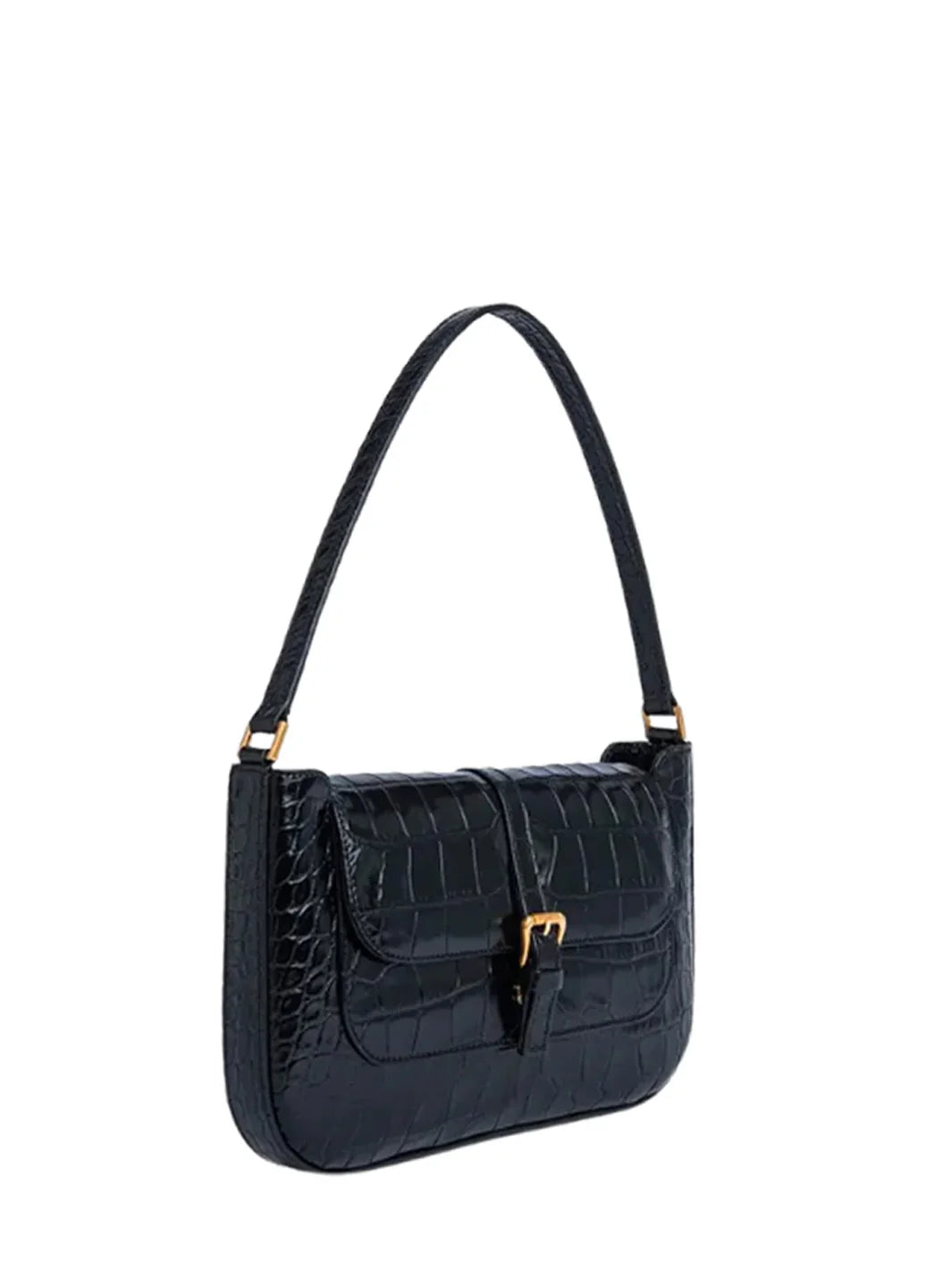 Сумка через плече Miranda від BY FAR втілює дух 90-х років з виразним багетним силуетом. Виготовлена зі шкіри з тисненням під рептилію, вона має вишуканий вигляд, доповнений фурнітурою у вигляді пряжки. Одне внутрішнє відділення з відкидним клапаном додає практичності, забезпечуючи зручне зберігання речей. Короткий шкіряний ремінець підкреслює елегантність цієї моделі, роблячи її чудовим вибором як для повсякденного носіння, так і для особливих випадків.