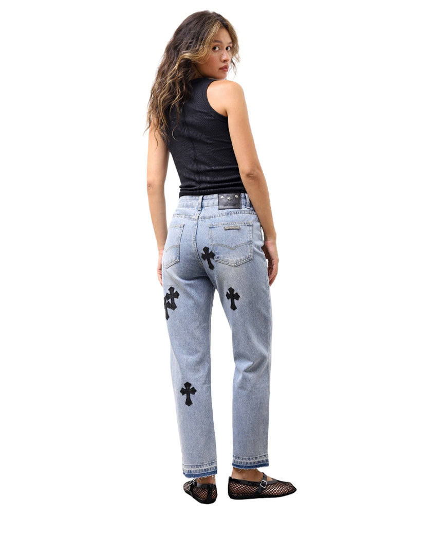 Chrome Hearts Jeans with Black Cross Light Blue CH127-LBL