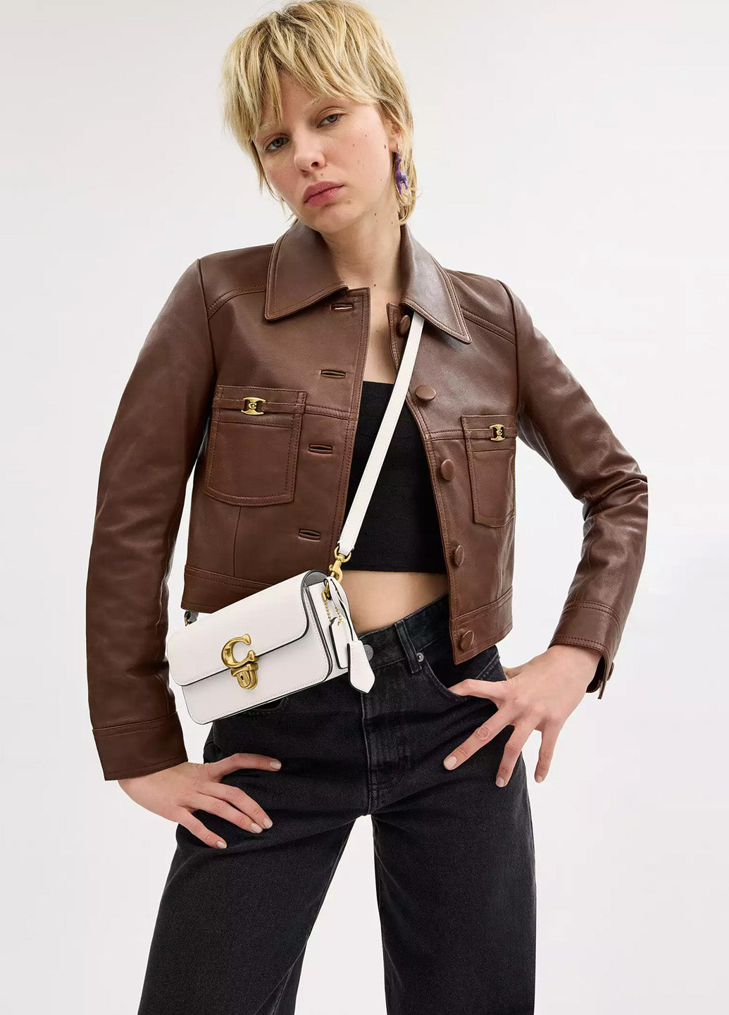 Сумка з Coach Design Studio поєднує класичний дизайн, який буде актуальним протягом багатьох років. Виготовлена з мʼякої шкіри з масляним дубленням, вона пропонує безліч кишень для зручної організації речей. Знімні ремені дозволяють носити її в руках, на плечі або крос-боді для більшої зручності.