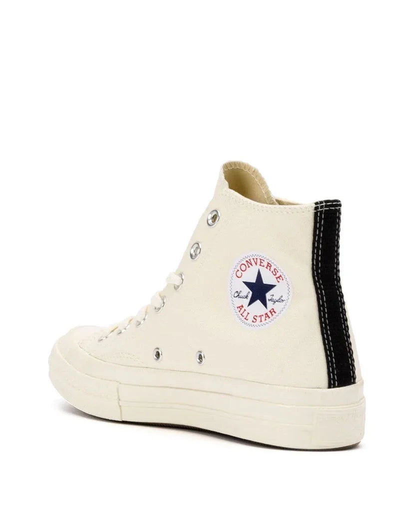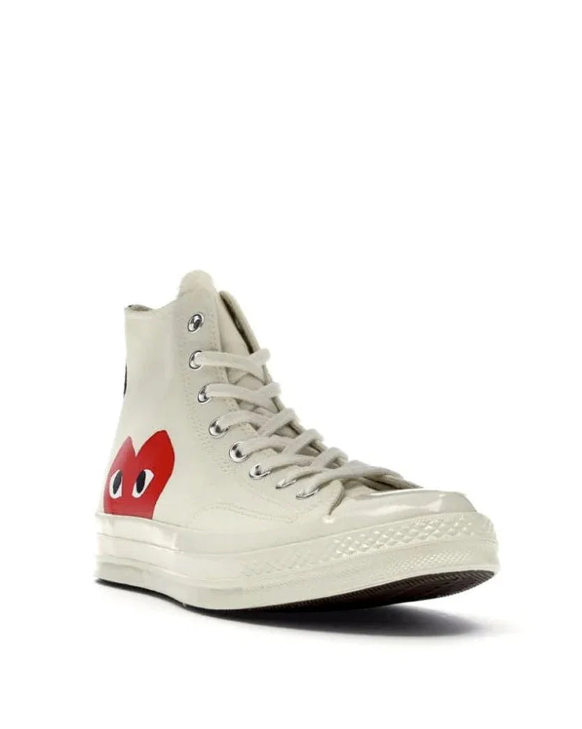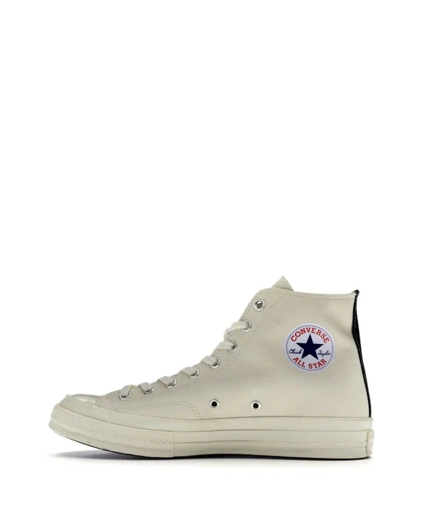 Довготривале партнерство між Comme des Garçons PLAY та Converse, яке розпочалося у 2009 році, стало культовою класикою. Ця версія зберігає основні елементи дизайну Чака Тейлора 70-х, доповнена мінімалістичним стилем і фірмовим логотипом PLAY на бокових частинах.