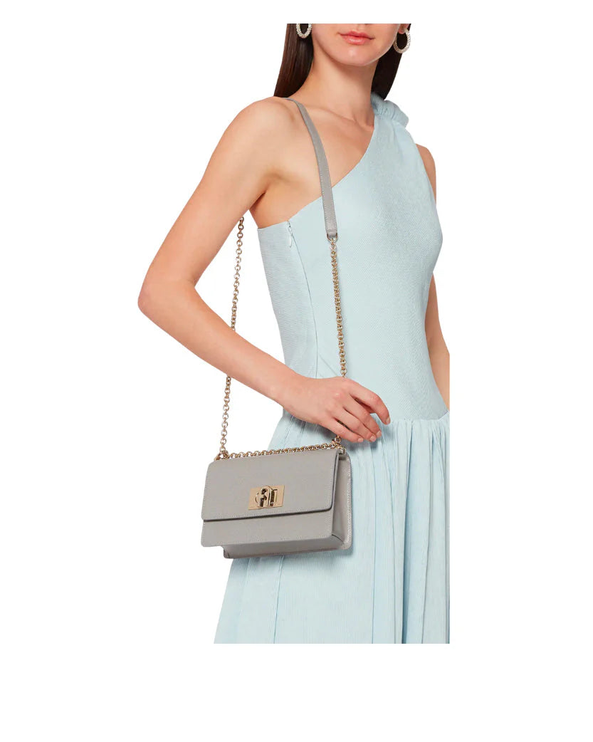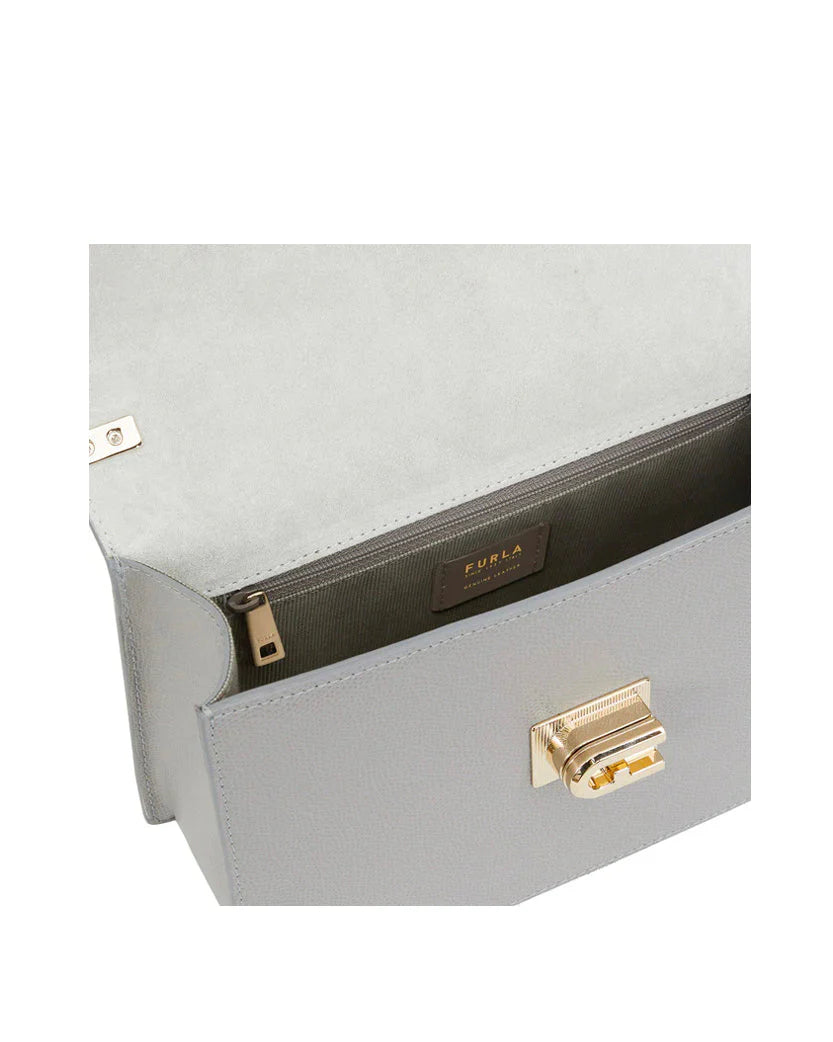 Жіноча прямокутна сумка-кросбоді від Furla, що належить до культової лінійки 1927, виготовлена з натуральної зернистої шкіри, поєднує стильний дизайн і високу якість. Сумка оснащена довгим ременем для зручного носіння. Внутрішній простір сумки включає кишеню на блискавці для дрібниць і відкриту кишеню на задній стінці, що додає практичності й організованості.
