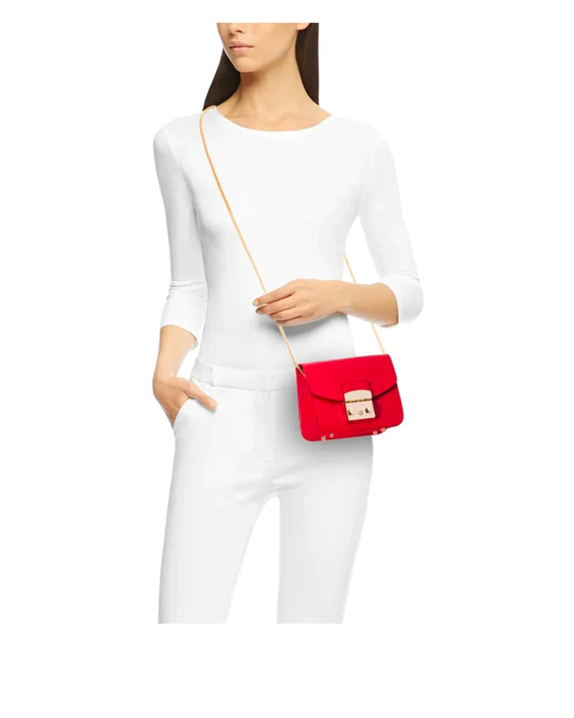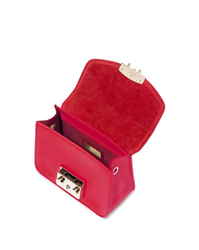 Furla Metropolis - це вишукана і стильна міні-сумка через плече, яка поєднує в собі високу якість та естетичну привабливість. Виготовлена з високоякісної текстурованої шкіри, вона відзначається компактними розмірами та ремінцем-ланцюжком, що забезпечує легкість і комфорт у носінні. Сумка оснащена замком-турникетом та має невелику внутрішню кишеню для зручного зберігання дрібниць