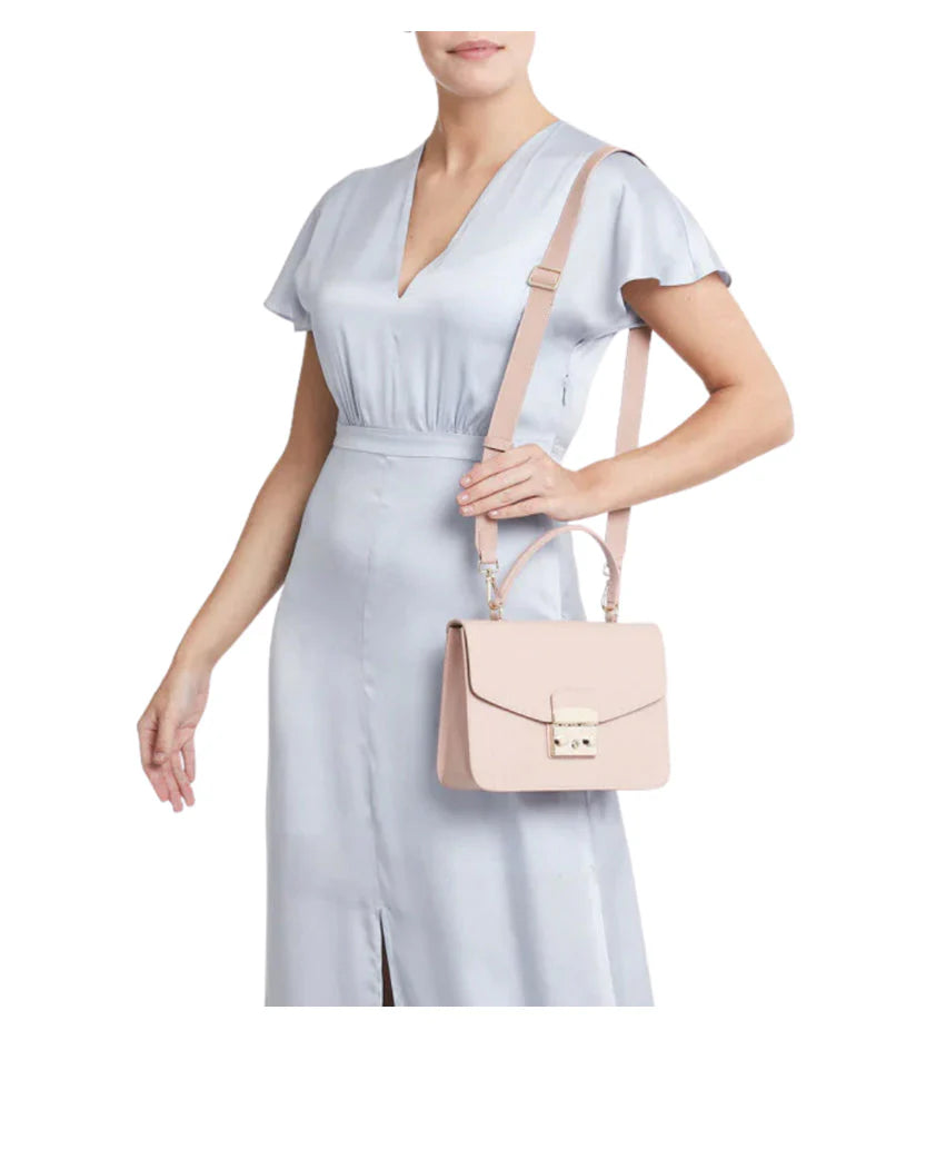Furla Metropolis Top Handle S — це елегантна жіноча сумка, виготовлена з преміальної шкіри, яка підкреслює її розкішний і класичний вигляд. Ця модель оснащена зручними ручками, що дозволяє носити її як в руках, так і на плечі, забезпечуючи різноманітність у використанні. Додатковий комфорт забезпечується завдяки довгому знімному та регульованому плечовому ременю.