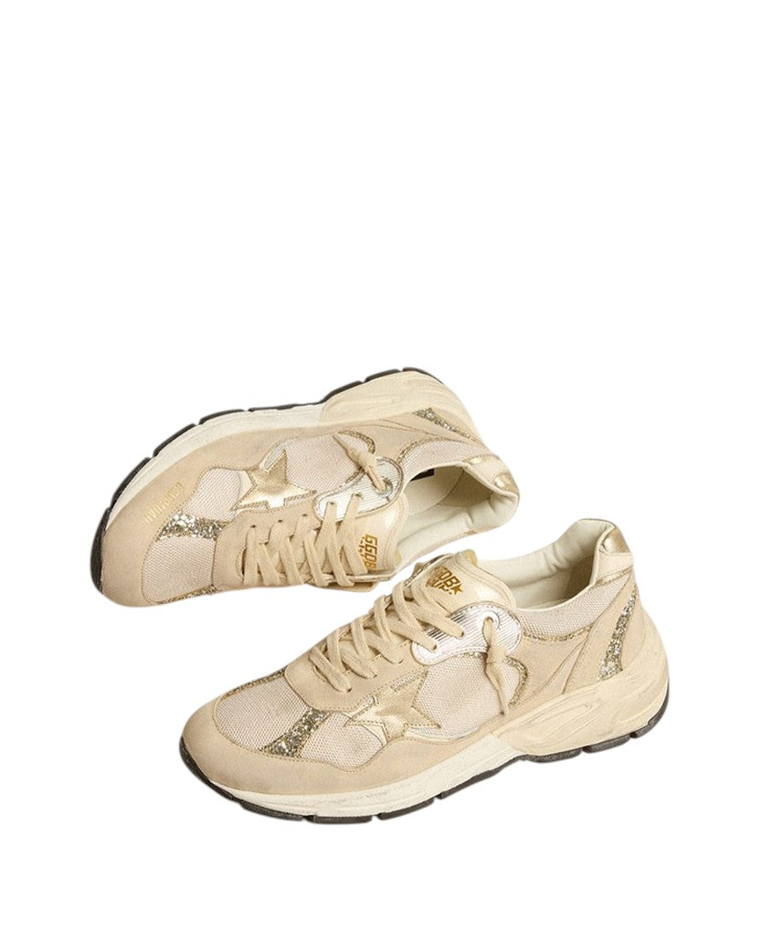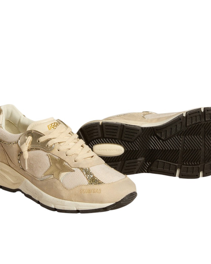 Golden Goose Dad-Star in Beige with Gold Glitter