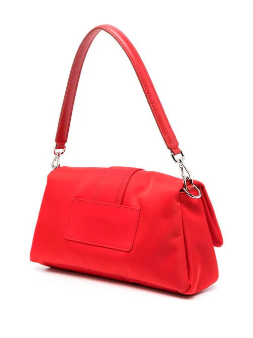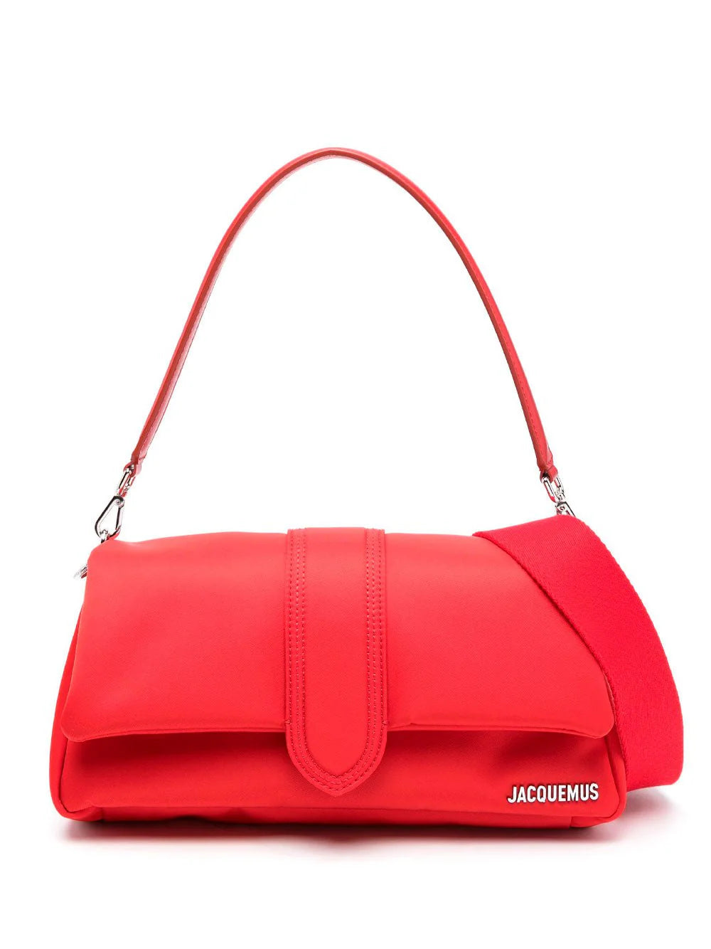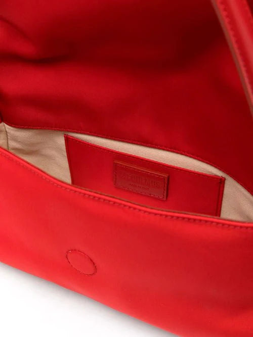 Сумка Le Bambimou від Jacquemus виконана з нейлону з шкіряними деталями та підкладкою із саржі. Вона має відкидний верх із прихованою магнітною застібкою, що забезпечує зручний і швидкий доступ до основного відділення. Усередині передбачена кишеня для карток, а спереду сумку прикрашає металевий логотип Jacquemus сріблястого кольору. Знімний шкіряний ремінь через плече та регульований ремінь із ремінної стрічки надають кілька варіантів носіння. Елегантний дизайн і функціональність роблять цю сумку стильним і практичним аксесуаром для вашого гардеробу.