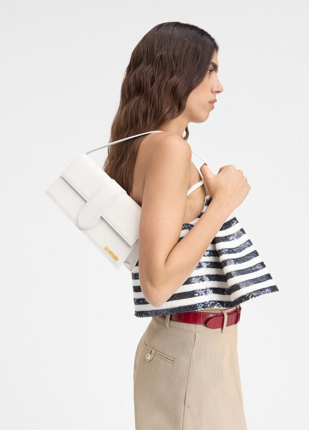 Звучить як елегантна та стильна сумка! Ця версія Le Bambino від Jacquemus, виготовлена з високоякісної натуральної шкіри та прикрашена золотистою фурнітурою, відображає сучасний дизайн та увагу до деталей. Її компактний, але функціональний дизайн зробить її чудовим доповненням до будь-якого образу. І полотняна внутрішня частина з одним слотом для карток додасть практичності.