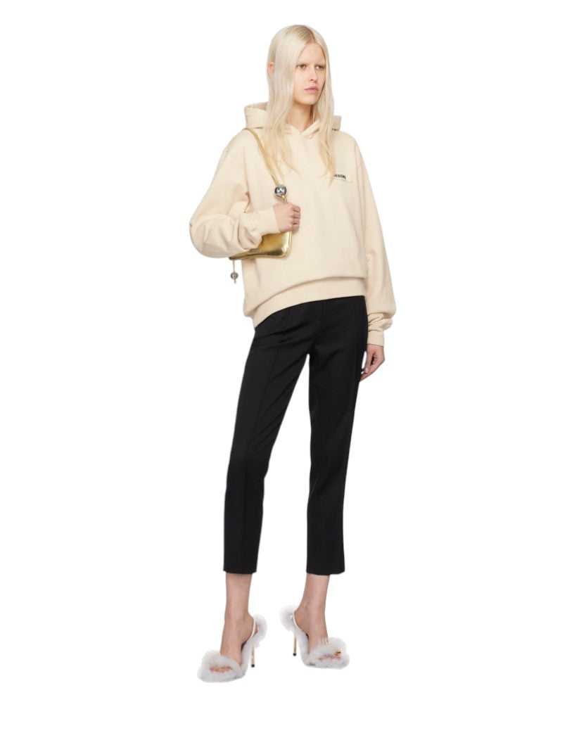 Худі Jacquemus Le Gros Grain — це поєднання невимушеного стилю та максимального комфорту. Модель вільного крою виготовлена з м’якого бавовняного флісу, має спущені плечі, зручний капюшон, ребристі манжети та поділ для ідеальної посадки. Завершує образ нашивка з логотипом бренду зліва на грудях, що додає акценту мінімалістичному дизайну.