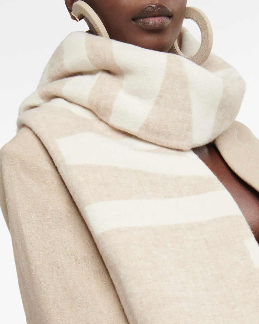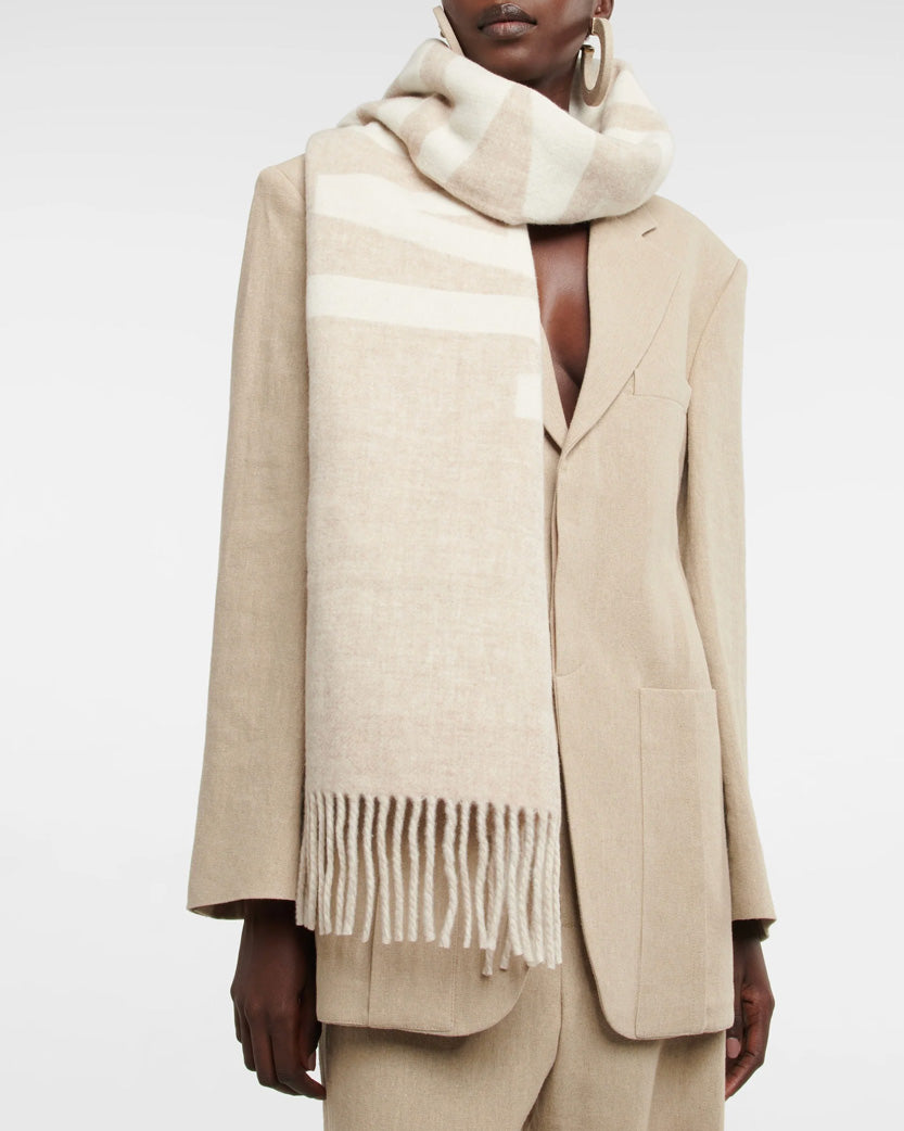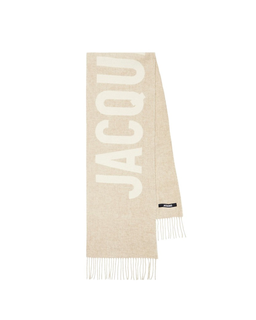 Jacquemus Logo Jacquard Fringed Edge Scarf Beige