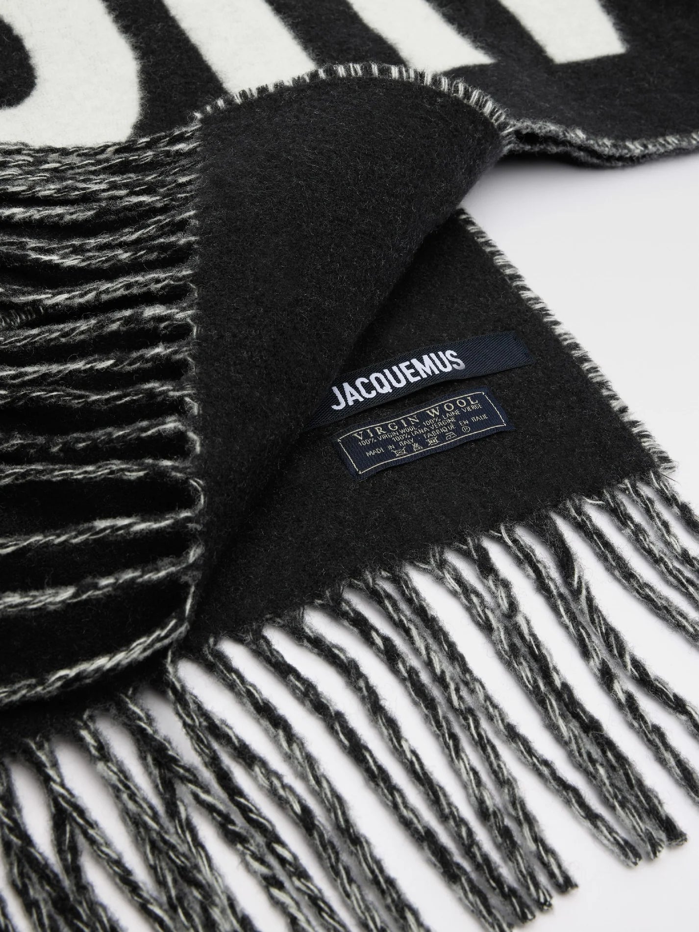 Jacquemus Logo Jacquard Fringed Edge Scarf Black