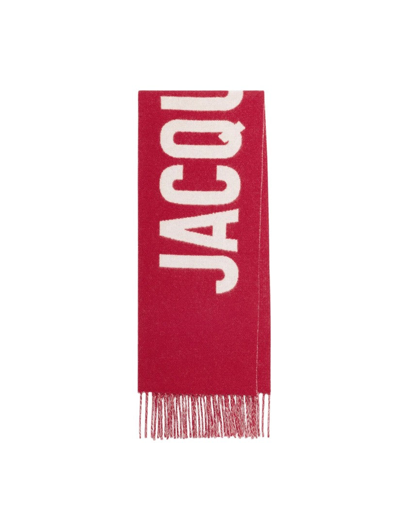 Jacquemus Logo Jacquard Fringed Edge Scarf Red
