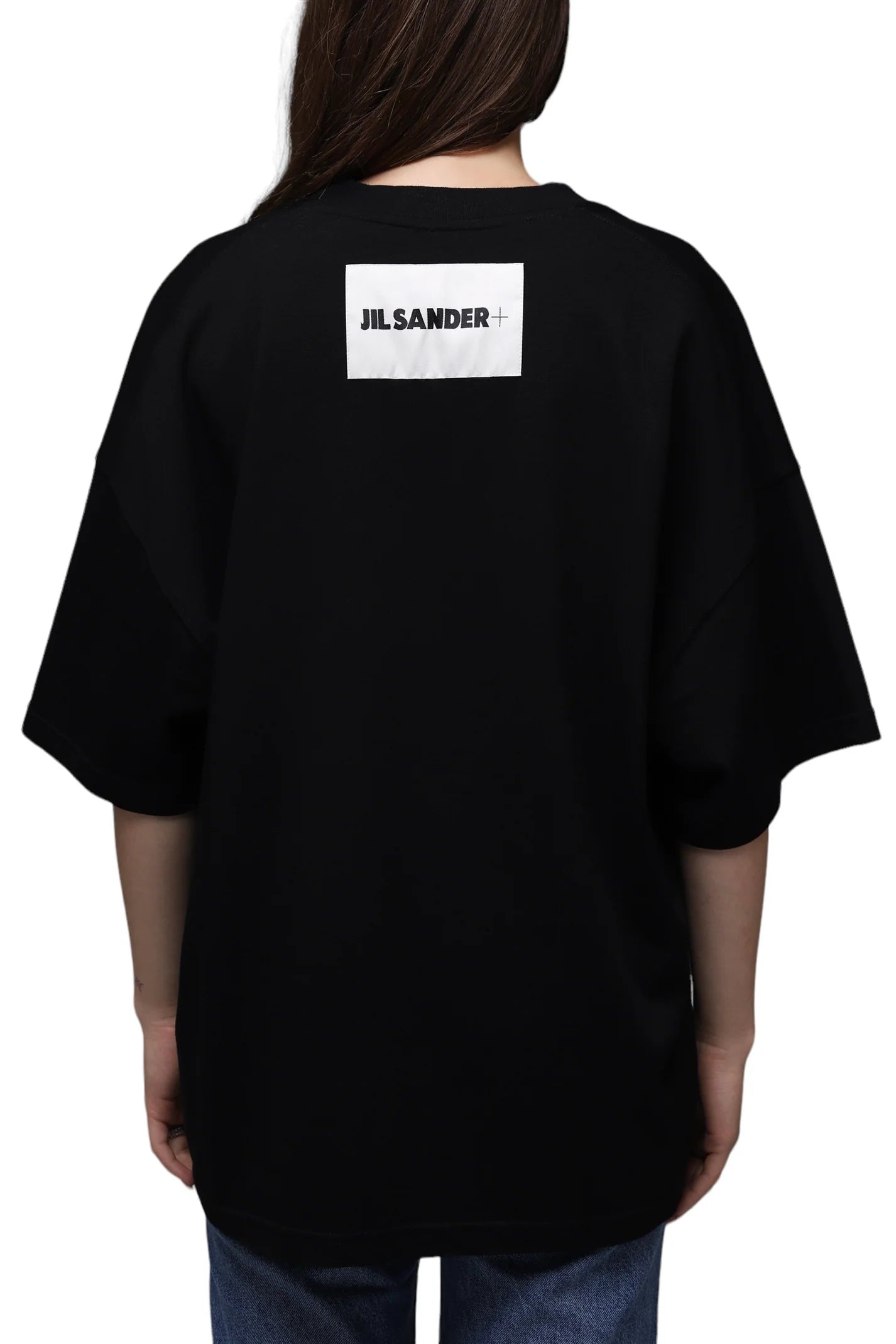 Футболка вільного крою, яка не обмежує рухів, виготовлена з м'якої бавовни джерсі, що забезпечує хорошу вентиляцію. Напис з іменем та прізвищем Jil Sander на чистому фоні цього тонкого, але міцного матеріалу виглядає яскраво та контрастно.