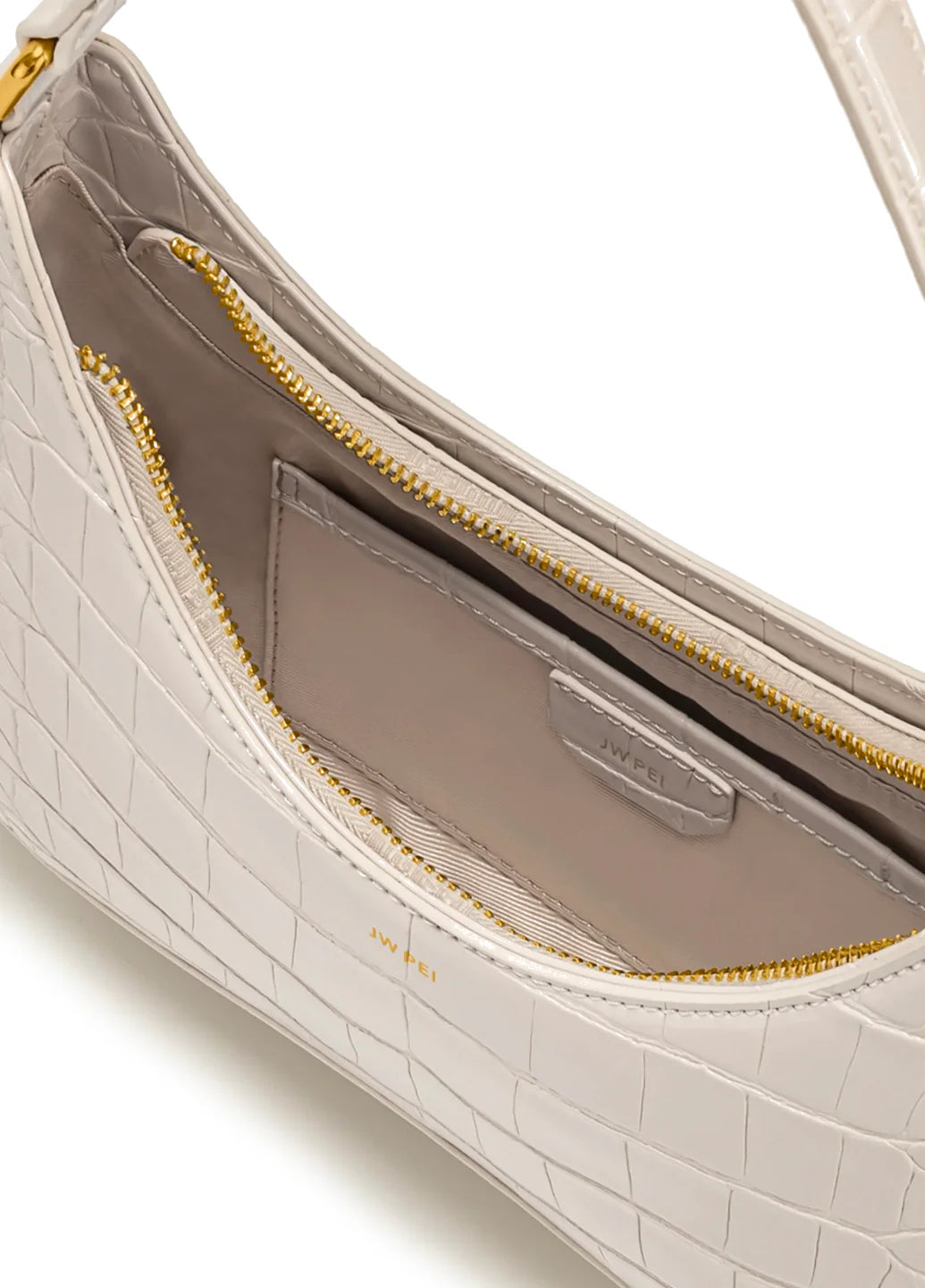 Сумка JW PEI Ruby Croc – це вишуканий аксесуар відомого бренду, виготовлений з екошкіри з тисненням під крокодилячу шкіру і декорований елегантною золотистою фурнітурою. Цей класичний аксесуар через плече оснащений зручною застібкою-блискавкою, одним просторим відділенням і внутрішньою кишенею для дрібниць. Знімний ремінь дає можливість носити сумку в різних стилях, а тканинна підкладка забезпечує комфорт і тривалий термін служби. Сумка стане ідеальним вибором для тих, хто прагне мати стильний і функціональний аксесуар на кожен день.