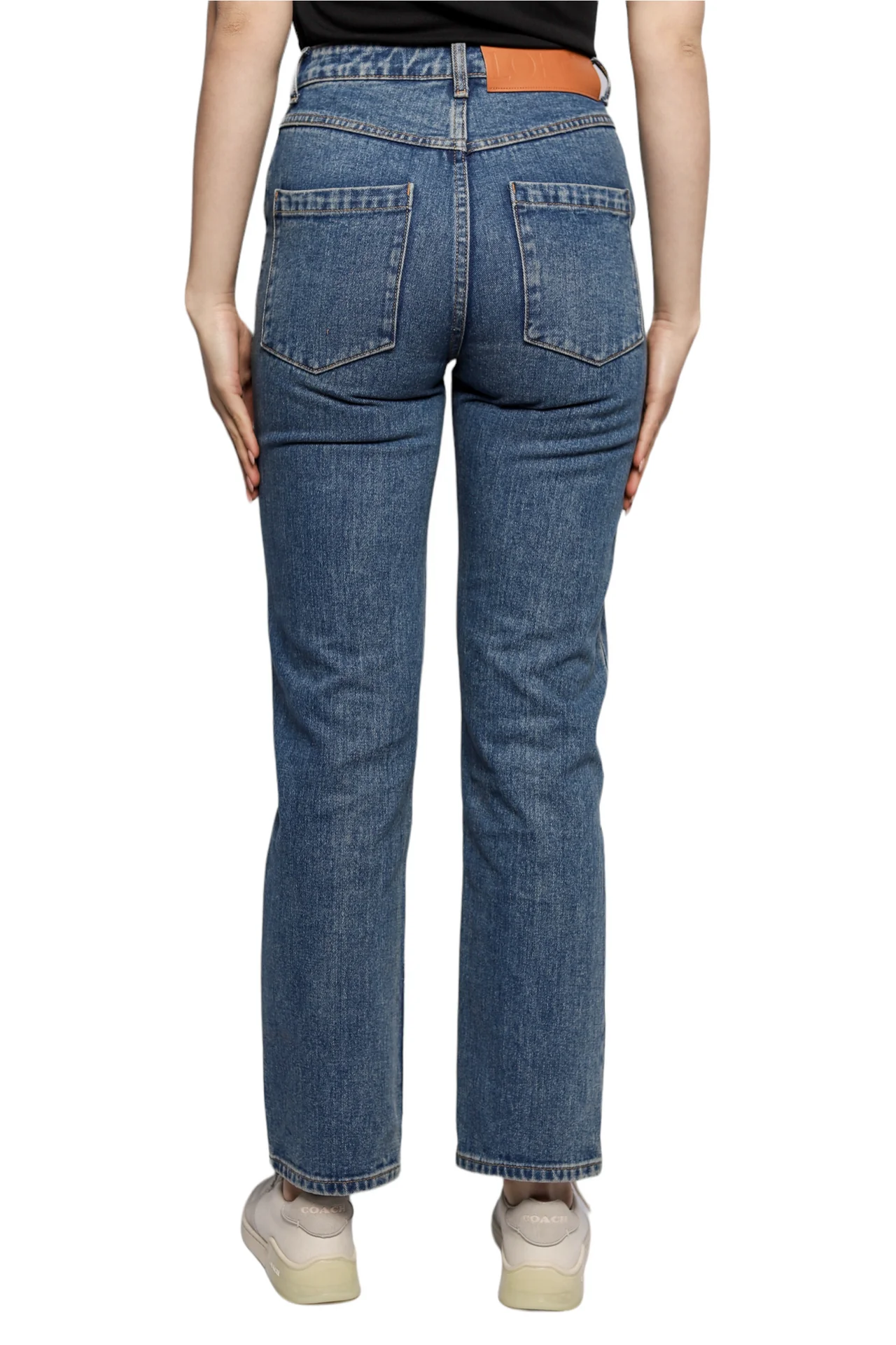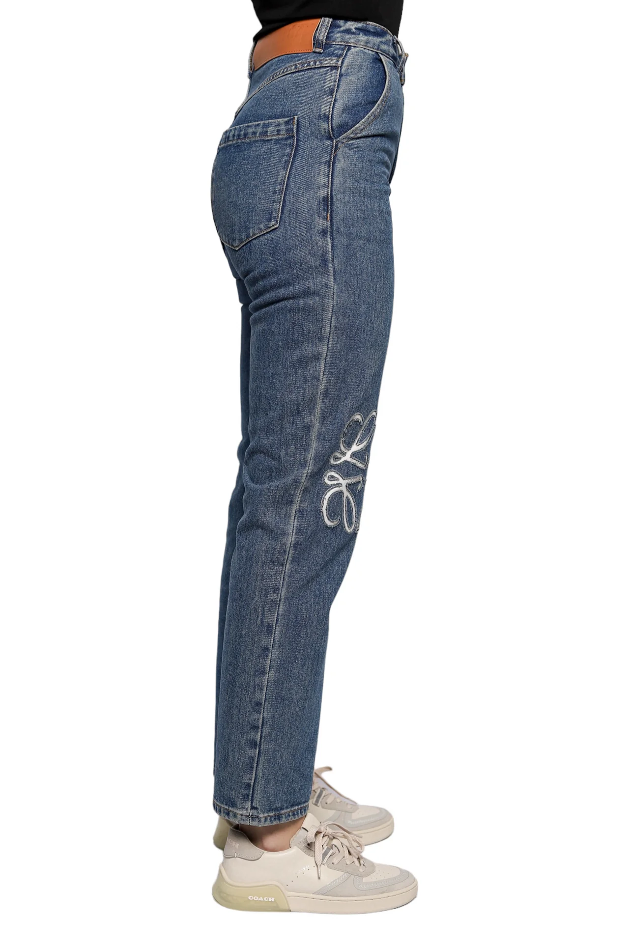 Джинси Loewe Anagram у відтінку Denim Blue - це втілення класичного стилю та якості. Вони виготовлені з високоякісного деніму, який забезпечує комфорт та довговічність. Модель доповнена прихованою застібкою на блискавку, прорізними кишенями, задніми накладними кишенями, вишитими анаграмами на колінах та тисненою шкіряною нашивкою LOEWE ззаду. Ці джинси стануть невід'ємною частиною вашого гардеробу, додаючи йому нотки елегантності та стилю.