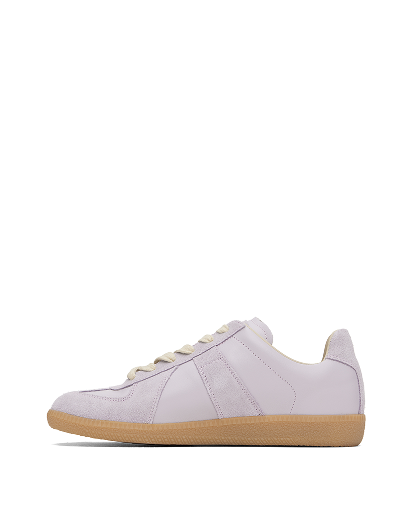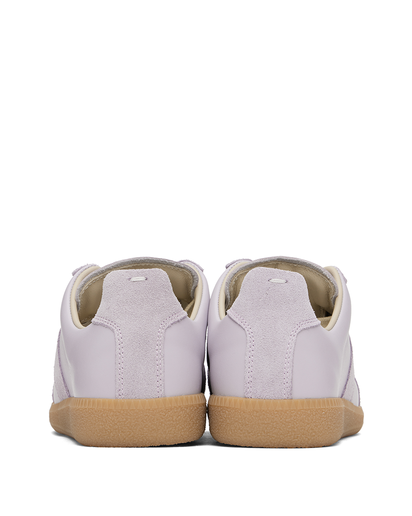 Maison Margiela Replica Sneakers — легендарна модель, що переосмислює класичне спортивне взуття 70-х років через призму сучасного дизайну. Виготовлені з преміальної шкіри наппа у поєднанні з м’якою замшею, ці кросівки поєднують мінімалістичну естетику з продуманою функціональністю. Гнучка гумова підошва гарантує зносостійкість і зчеплення, а м’яка бавовняна підкладка — комфорт у щоденному носінні. Завершальними акцентами слугують фірмова номерна етикетка на язичку та характерне ручне маркування. Модель втілює ідею колекції «Replica» як даниною архівній моді з актуальним трактуванням від Maison Margiela.