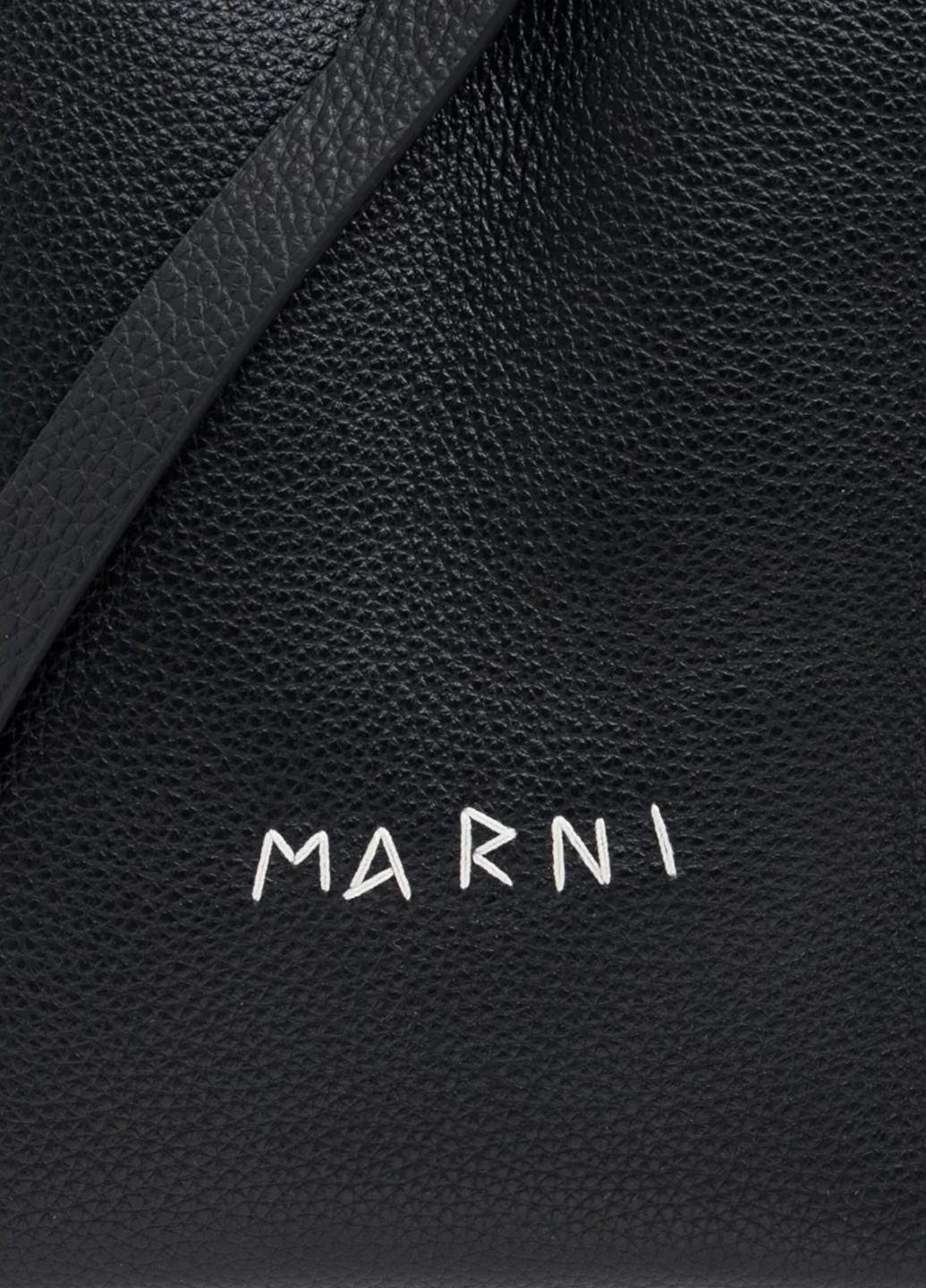 Сумка Marni North Nano — це стильний приклад сучасного мінімалізму в компактному форматі. Виготовлена з високоякісної натуральної шкіри у класичному чорному кольорі, вона вирізняється лаконічною прямокутною формою та функціональністю. Основне відділення закривається магнітною застібкою, а всередині розміщена зручна накладна кишеня. Фірмовий логотип Marni, надрукований спереду, додає вишуканості, а плечовий ремінь забезпечує комфортне щоденне носіння. Підкладка зі 100% тканини гарантує зносостійкість та приємні тактильні відчуття.