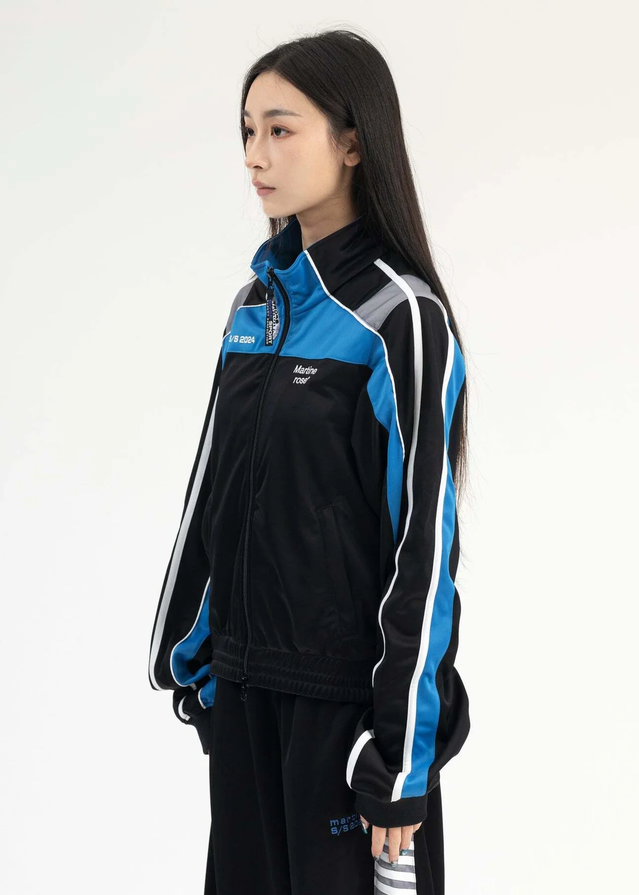 Спортивна куртка чорного кольору з оздобленням смужками вздовж рукавів і плечей від Martine Rose. Застібка на блискавку спереду, еластичний поділ, злегка подовжені рукава з еластичними манжетами. На грудях вишитий логотип бренду.