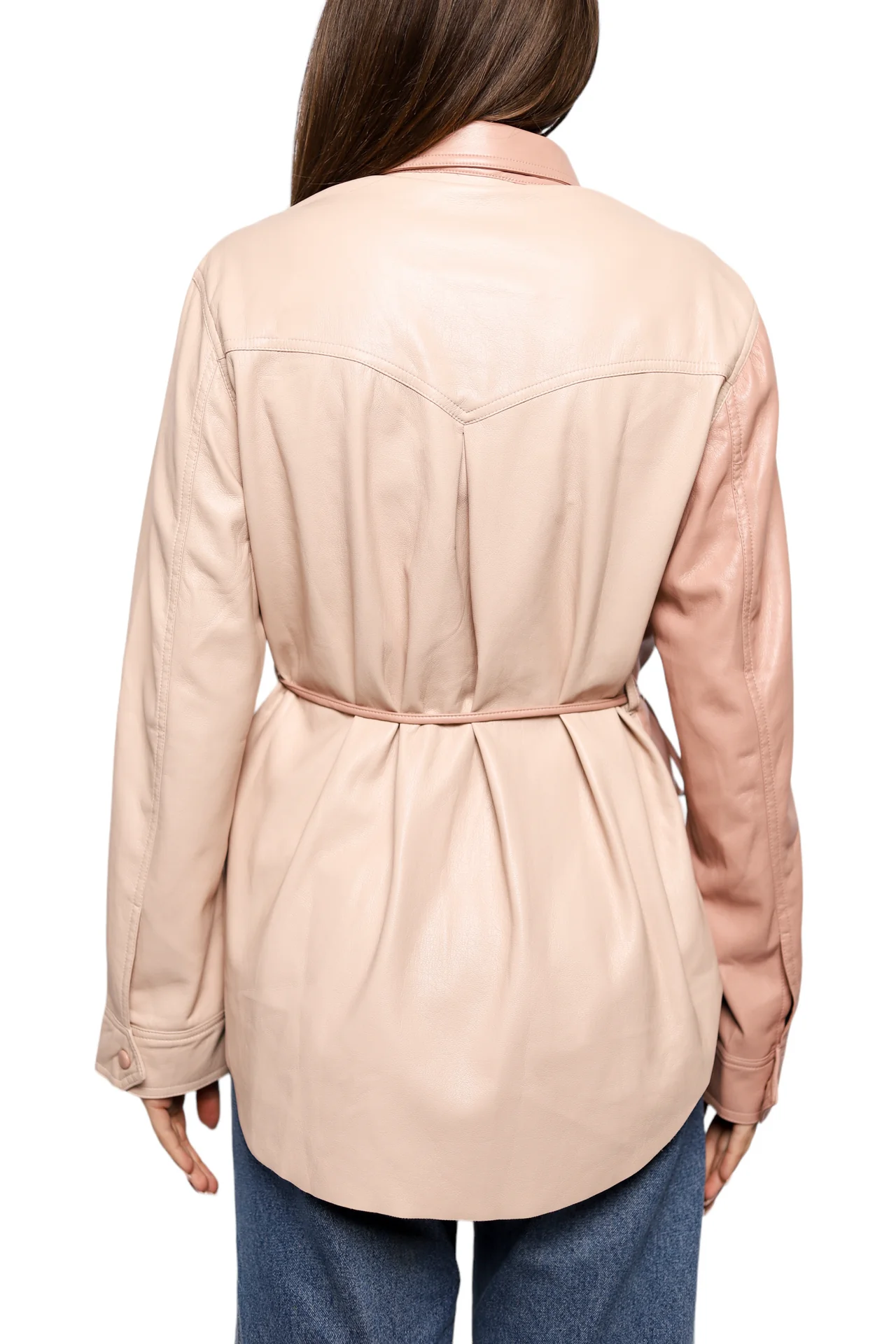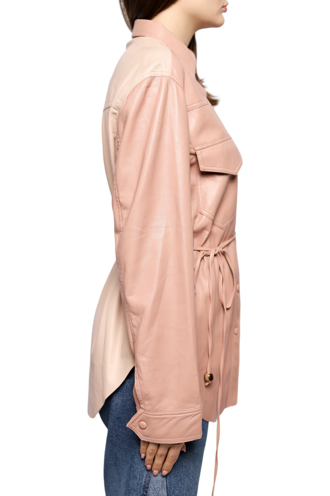 Nanushka Eddy Eddy Belted Two-tone Vegan Leather Shirt In Pink