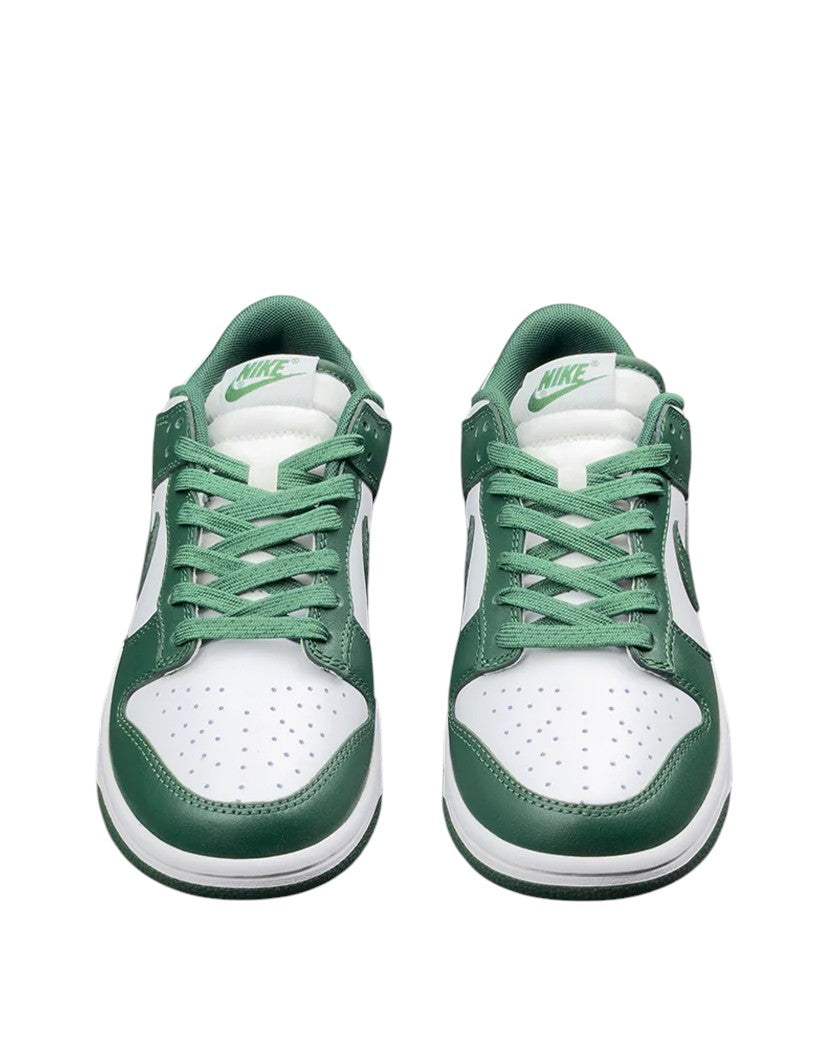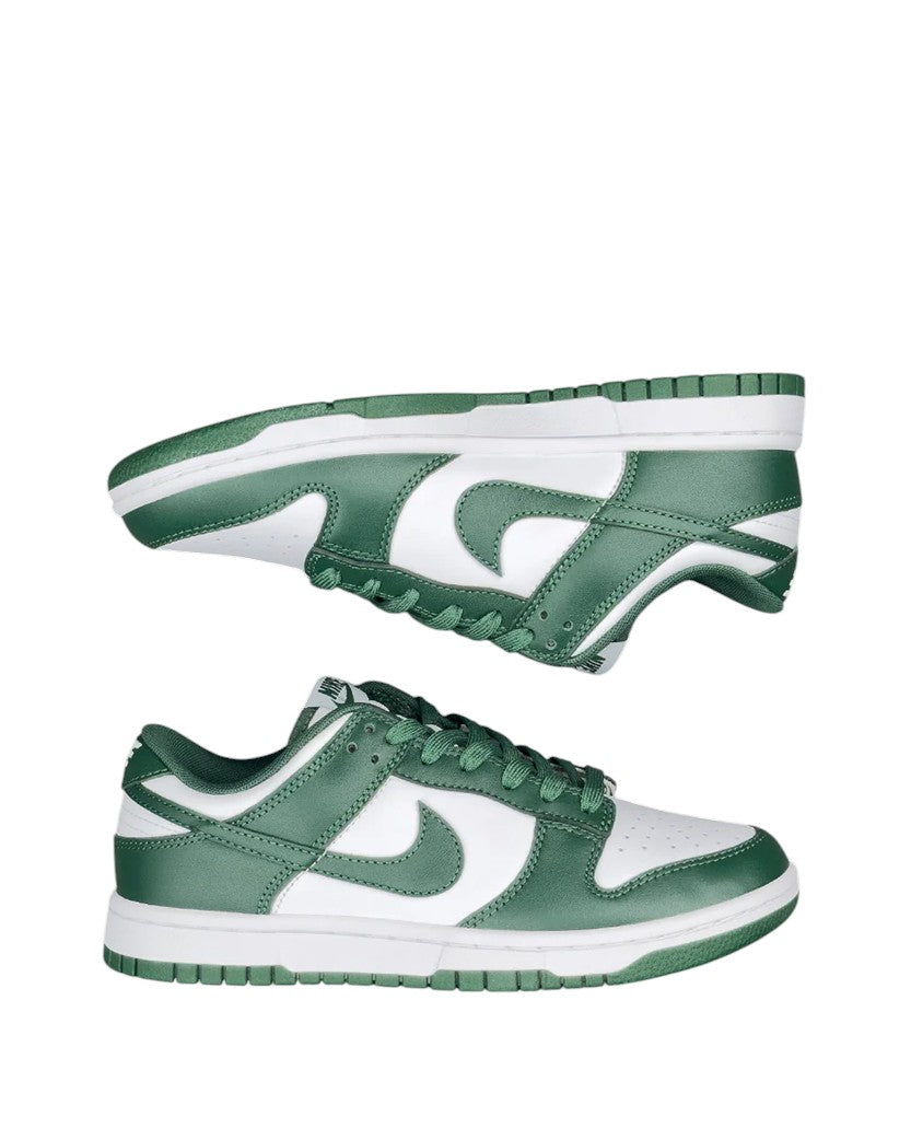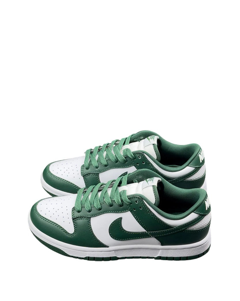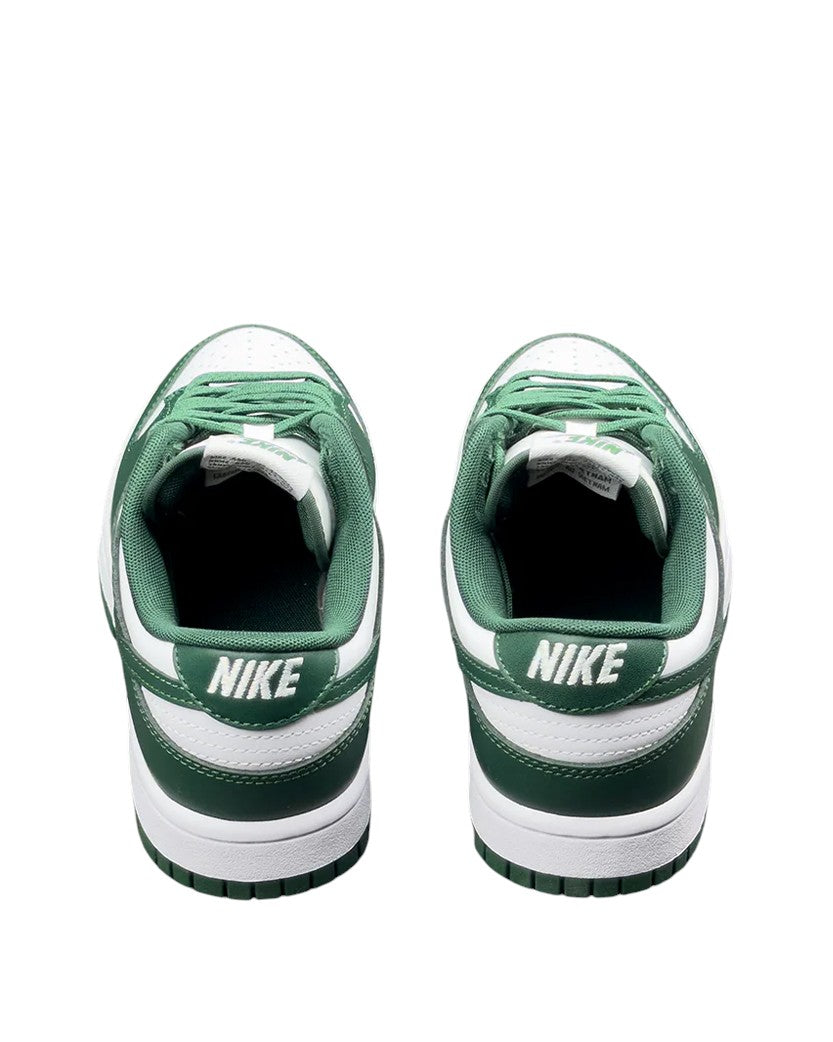 Nike Dunk Low Michigan State - це низька версія кросівок Dunk від штату Мічиган, що вийшла у 2020 році. Як і попередня модель, кросівки мають двоколірний верх зі шкіри, виконаний у класичному кольороблокуванні "Be True to Your School". Білосніжна обробка контрастує з темно-зеленим Swoosh і відповідними накладками на носку і п'яті. Стандартні фірмові символи Nike прикрашають п'яту та нейлоновий язичок. Низькі кросівки встановлені на міцній гумовій підошві з малюнком зчеплення з поверхнею, розробленим для твердої деревини.