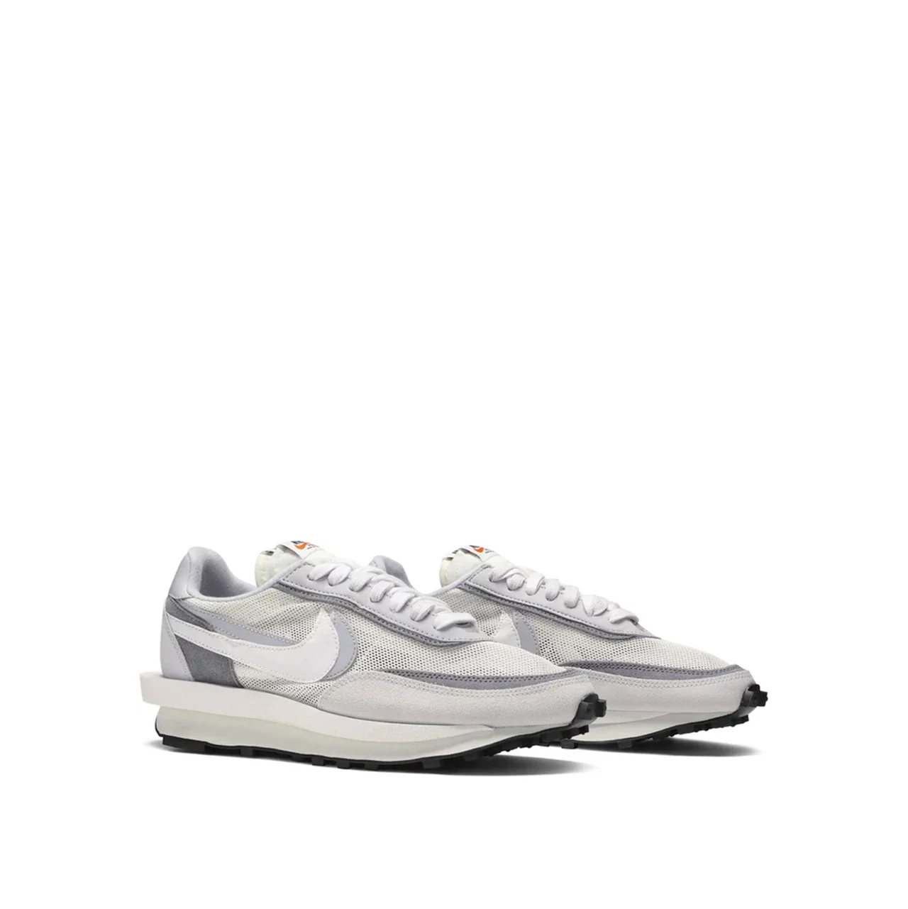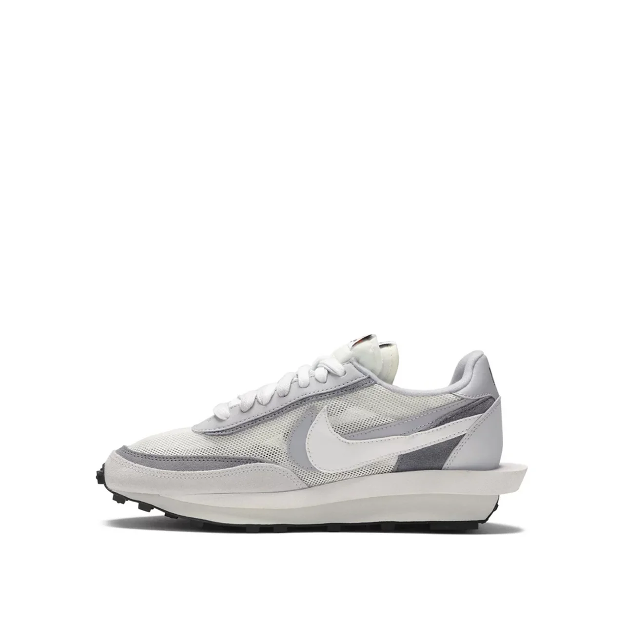 Sacai x LD Waffle - це унікальна колаборація японського бренду високої моди та Nike. Гібридна модель, що поєднує дві вінтажні моделі кросівок, ця ітерація "Summit White", що з'явилася у вересні 2019 року, має сітчасту основу, подвійні замшеві панелі та з'єднані між собою Swooshes. Концепція доповнена подвійними язичками та додатковими подвійними шнурками. За тією ж формулою дві підошви накладаються одна на одну.