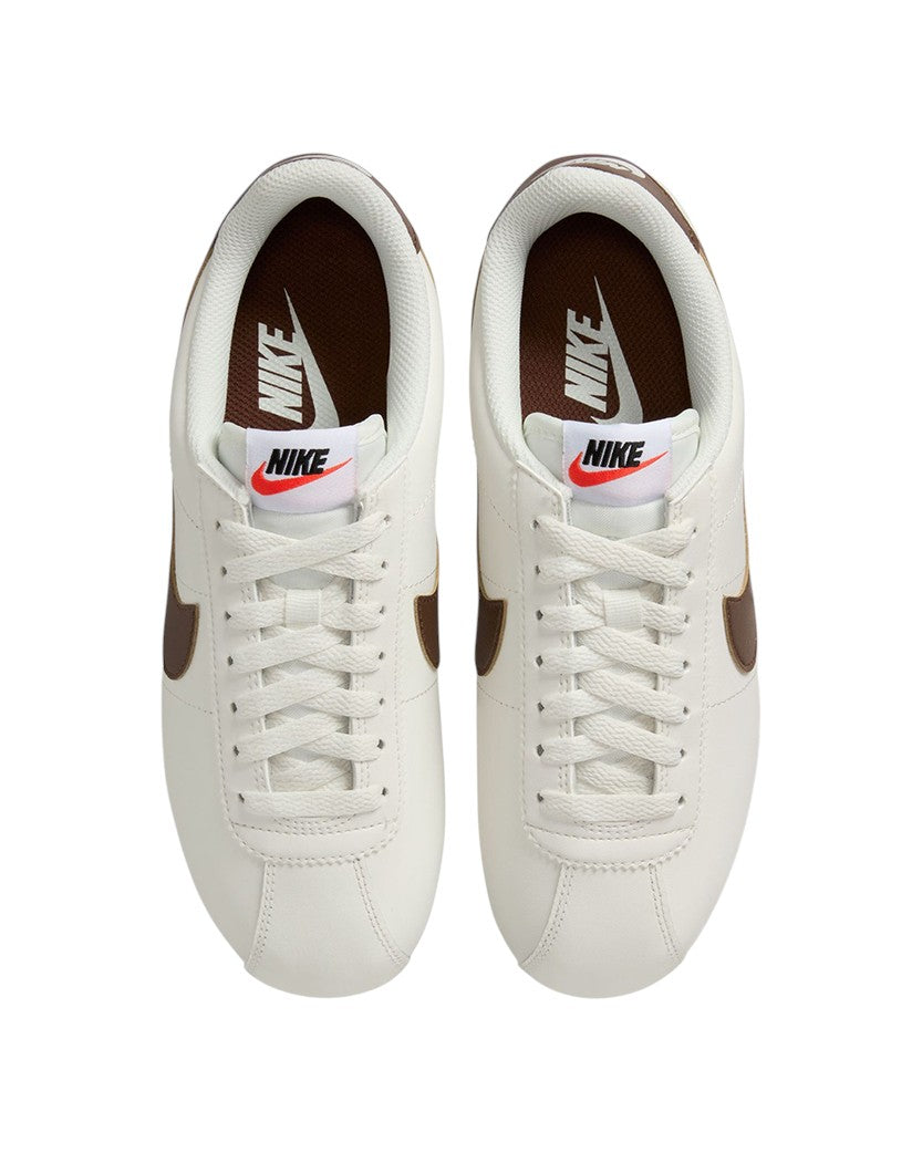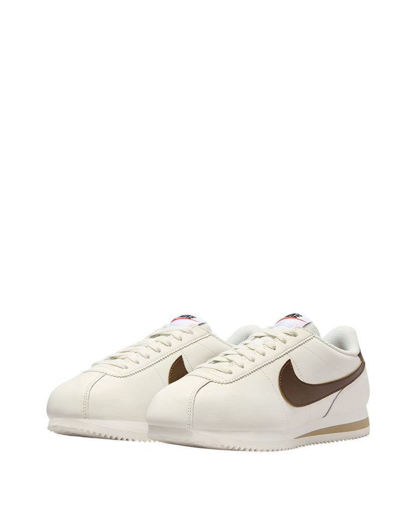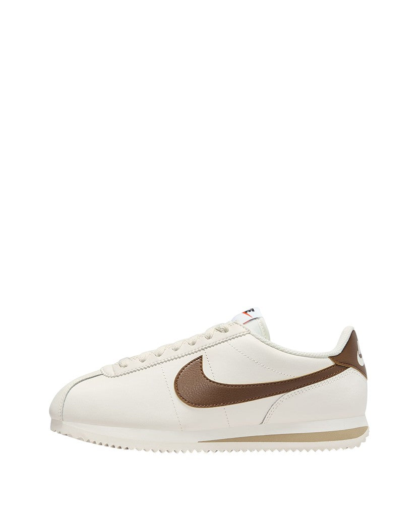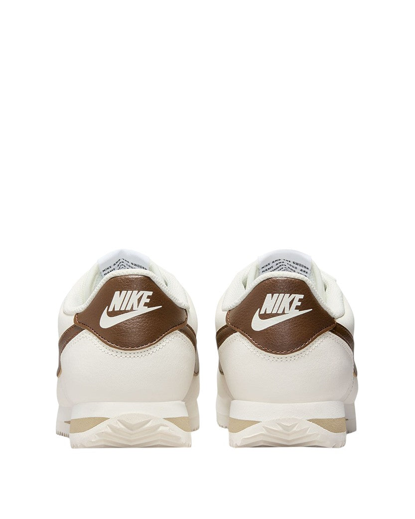 Nike Wmns Cortez 'Cacao Wow' – це стильна ітерація культової моделі, виконана у вишуканій палітрі. Кросівки виготовлені з високоякісної шкіри з сітчастими язичками та підкладкою, що забезпечує міцність і повітропроникність. Елегантне поєднання кольорів проявляється на логотипах Swoosh, п'яткових накладках та устілках, а відтінок хакі на білій проміжній підошві підкреслює сучасний вигляд. Класичний логотип Nike прикрашає язички, устілки та п’ятки, а гумова підошва з ялинковим візерунком забезпечує хороше зчеплення з поверхнею, додаючи моделі комфорту та довговічності.