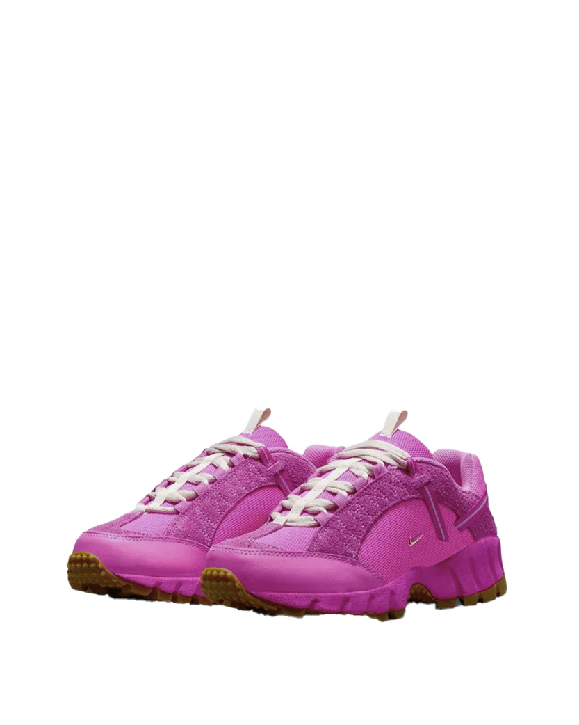 Кросівки Nike X Jacquemus Air Humara Lx Pink поєднують в собі привабливу палітру та вінтажний стиль для активного відпочинку. Це третя колаборація з паризьким модним лейблом, яка представляє сучасний погляд на оригінальну модель Nike Humara 1997 року, з рожевим сітчастим верхом, тональними накладками з ворсистої замші та золотистим міні-сушуаром з ефектом металік. Nike Swoosh повторюються на прошитих шкіряних шнурках, тоді як логотип Jacquemus прикрашає язичок і задник. Рожевий текстиль огортає проміжну підошву, оснащену інкапсульованою амортизацією Air-sole і підтримувану гумовою підошвою.