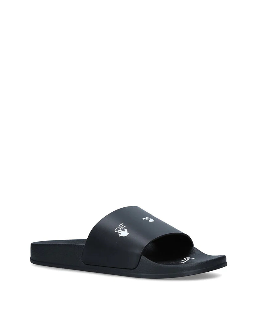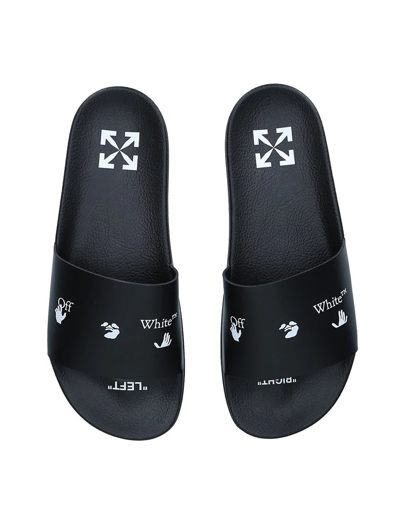 Ці чорні гумові сланці відразу впізнаються як творіння інноваційного бренду Off-White. Декоровані друкованими логотипами, фірмовими мотивами та цитатними фразами, вони чітко відображають почерк дизайнера, що їх створив.