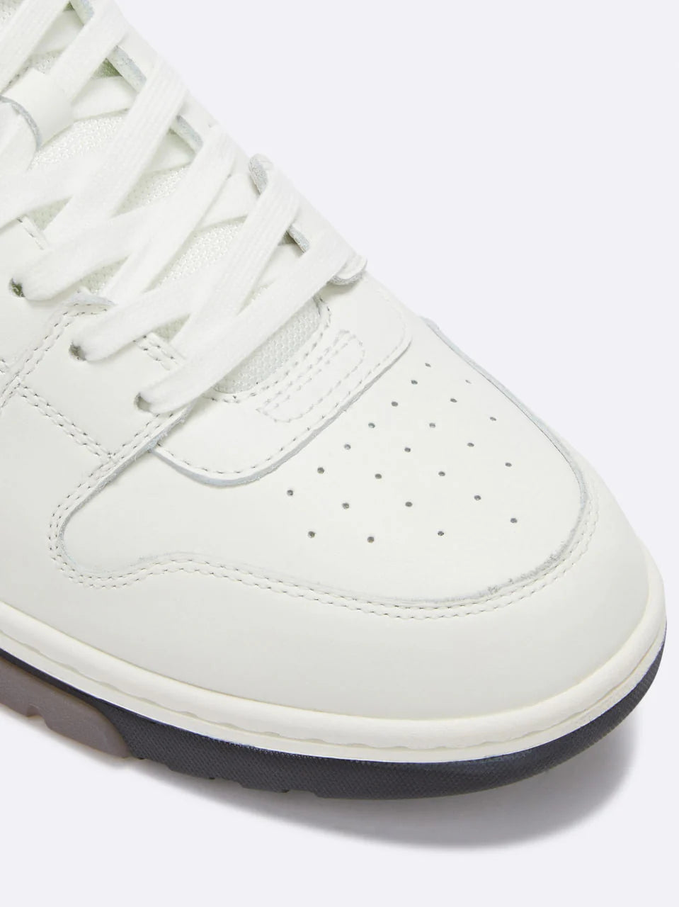 Біло-кремові кросівки Out Of Office від Off-White вирізняються своїм стильним дизайном і якісним матеріалом. Виготовлені зі шкіри, ці кросівки мають шнурівку і кремово-білу гумову підошву, яка забезпечує комфорт і зручність при носінні. Взуття прикрашене знімною аплікацією з логотипом, витисненим логотипом спереду, а також чорним принтом з логотипом на задній частині.
