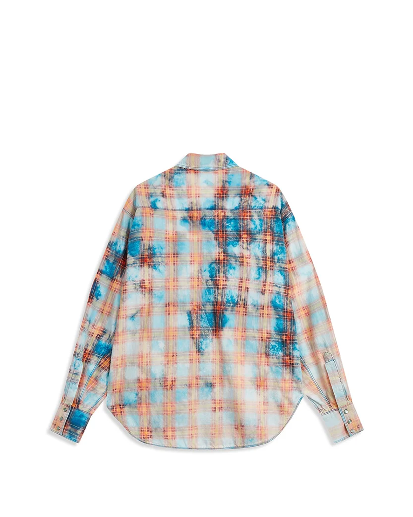 Ця сорочка виготовлена з гладенької бавовняної саржі та має вільний крій. Принт в клітинку в поєднанні з нерівномірним вибіленим ефектом створює унікальний стиль. Сорочка оснащена косими кишенями в складку з ластовицею, полірованою сріблястою фурнітурою та загостреним коміром, що додає елегантності. 100% бавовна забезпечує комфорт та якість.