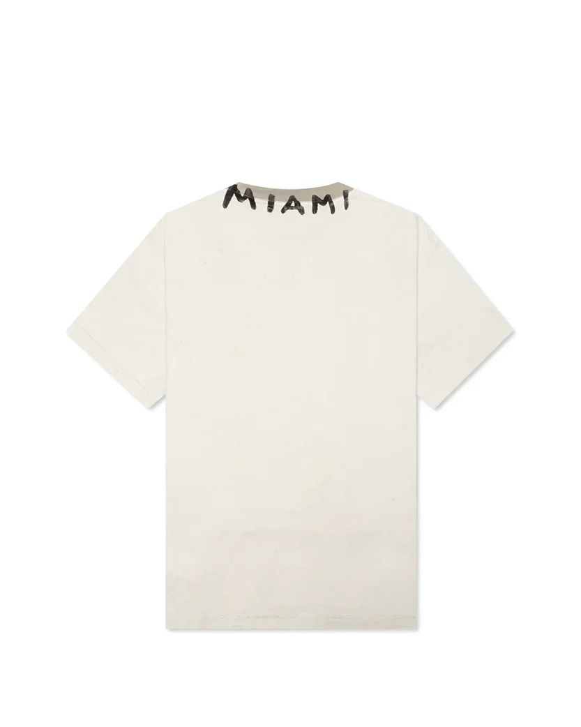 Футболка від Palm Angels виготовлена з високоякісної бавовни. Модель має круглий виріз горловини, короткі рукава, прямий поділ, логотип «Palm Angels» надрукований на комірі спереду та логотип «Miami» на комірі ззаду.