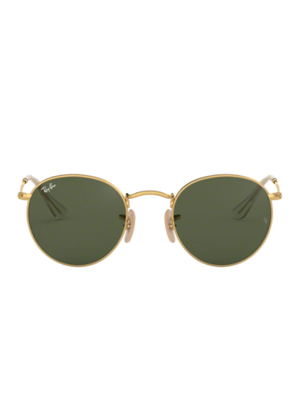Сонцезахисні окуляри RB3447 у круглій металевій оправі від Ray Ban (Рей Бан). Прямі дужки з гостро вигнутими кінцями. Колір: gold-tone. Додається захисний чохол.