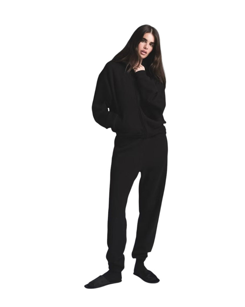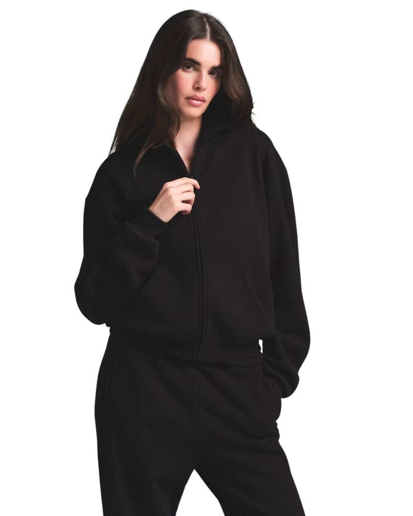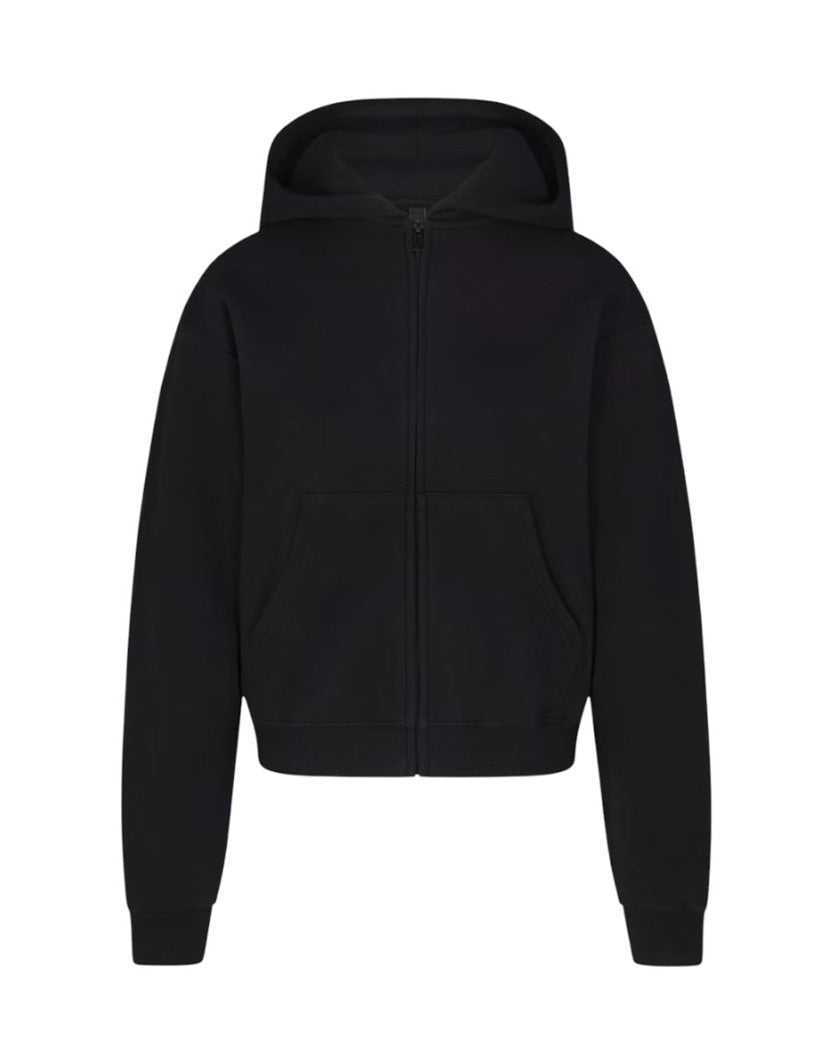 Skims Cotton Fleece Classic Zip Up Hoodie Black