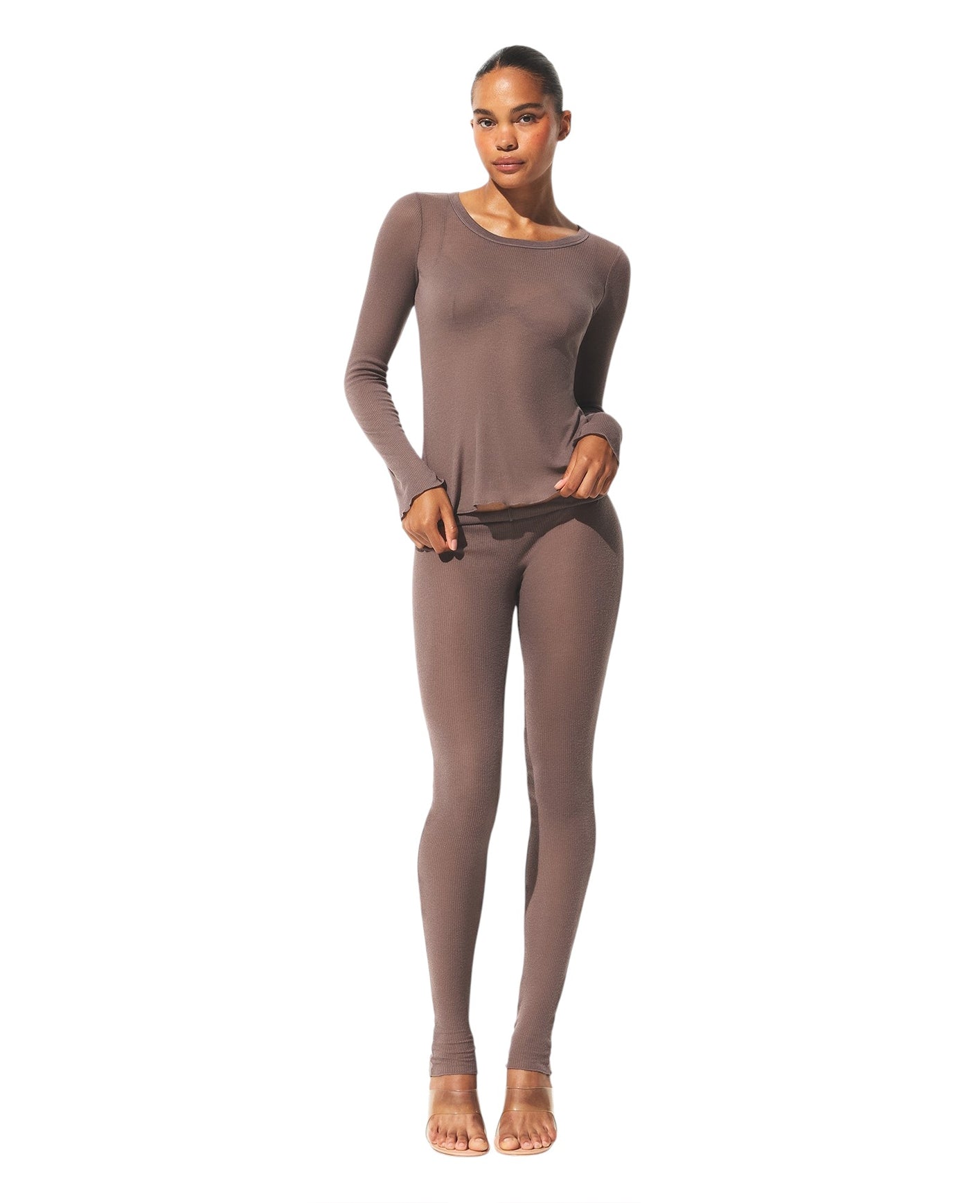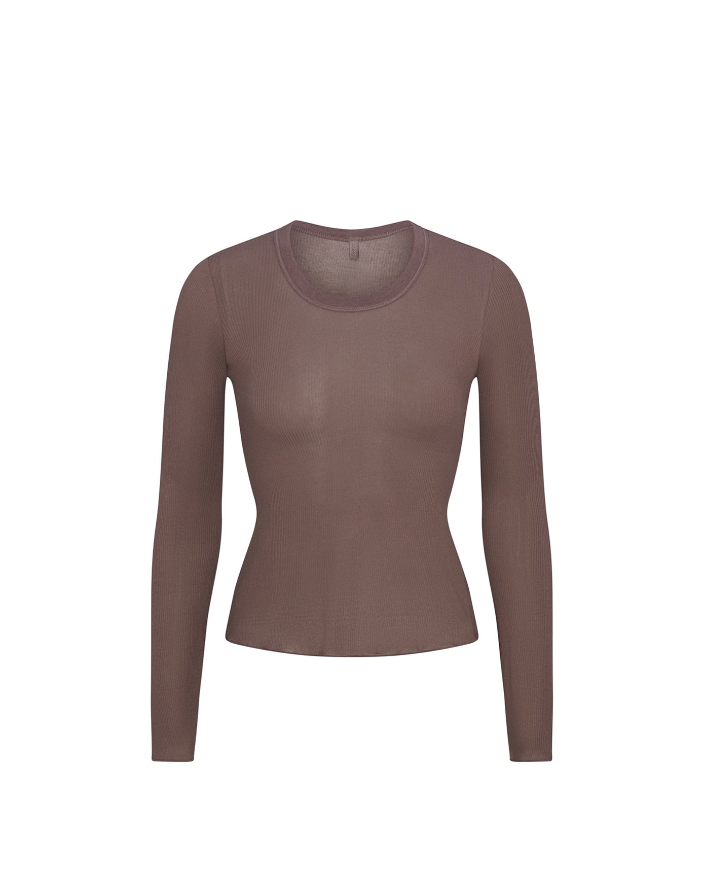 Лонгслів Skims Long Sleeve Crew Neck Top створений для тих, хто цінує комфорт і продуманий мінімалізм. Напівпрозора ребриста текстура, м’який силует і акуратна контрастна строчка формують сучасну базу для будь-якого гардеробу. Вільна посадка та еластичний матеріал гарантують зручність упродовж дня.