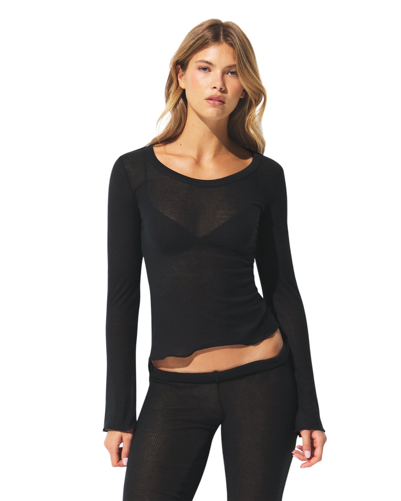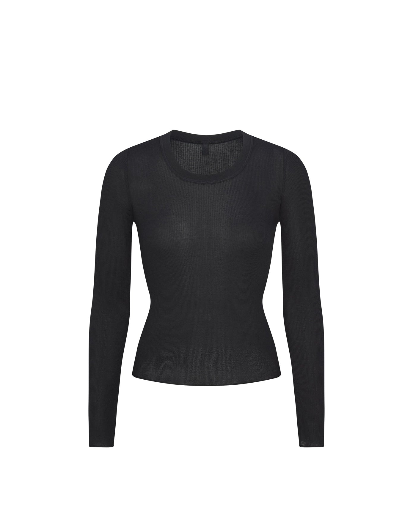 Лонгслів Skims Long Sleeve Crew Neck Top створений для тих, хто цінує комфорт і продуманий мінімалізм. Напівпрозора ребриста текстура, м’який силует і акуратна контрастна строчка формують сучасну базу для будь-якого гардеробу. Вільна посадка та еластичний матеріал гарантують зручність упродовж дня.