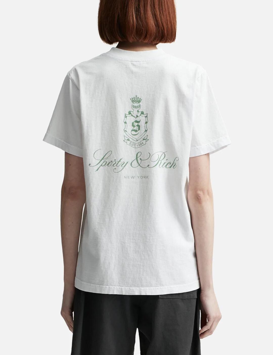 Створена для вашої повсякденної колекції, ця футболка Sporty & Rich Vendome пошита з м'якого бавовняного трикотажу та забезпечує комфортну посадку по фігурі. Логотип бренду на грудях додає цьому виробу позачасового вигляду королівського натхнення та підкреслює ідентичність бренду.