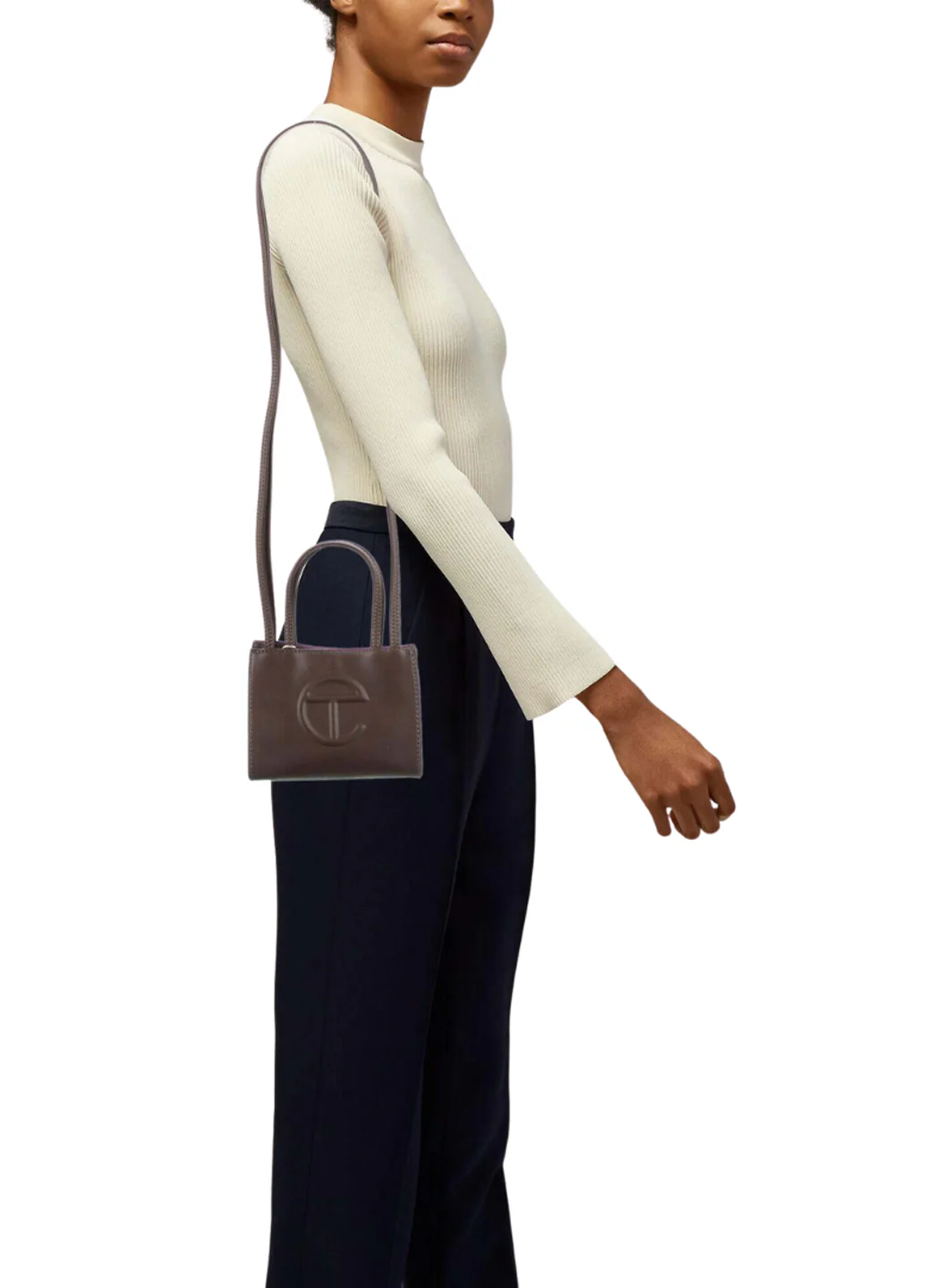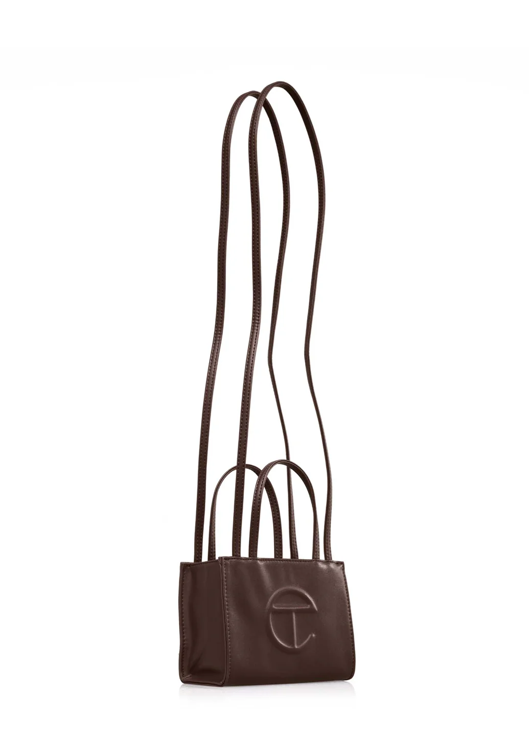 Культова сумка для покупок - практична сумка на кожен день. Вона має подвійні ремінці (ручки та ремінці через плече), тиснений логотип і магнітну застібку. Виготовлена зі штучної шкіри з підкладкою з твілу, сумка поставляється в мішечку зі шнурком з 100% бавовни із трафаретним логотипом.