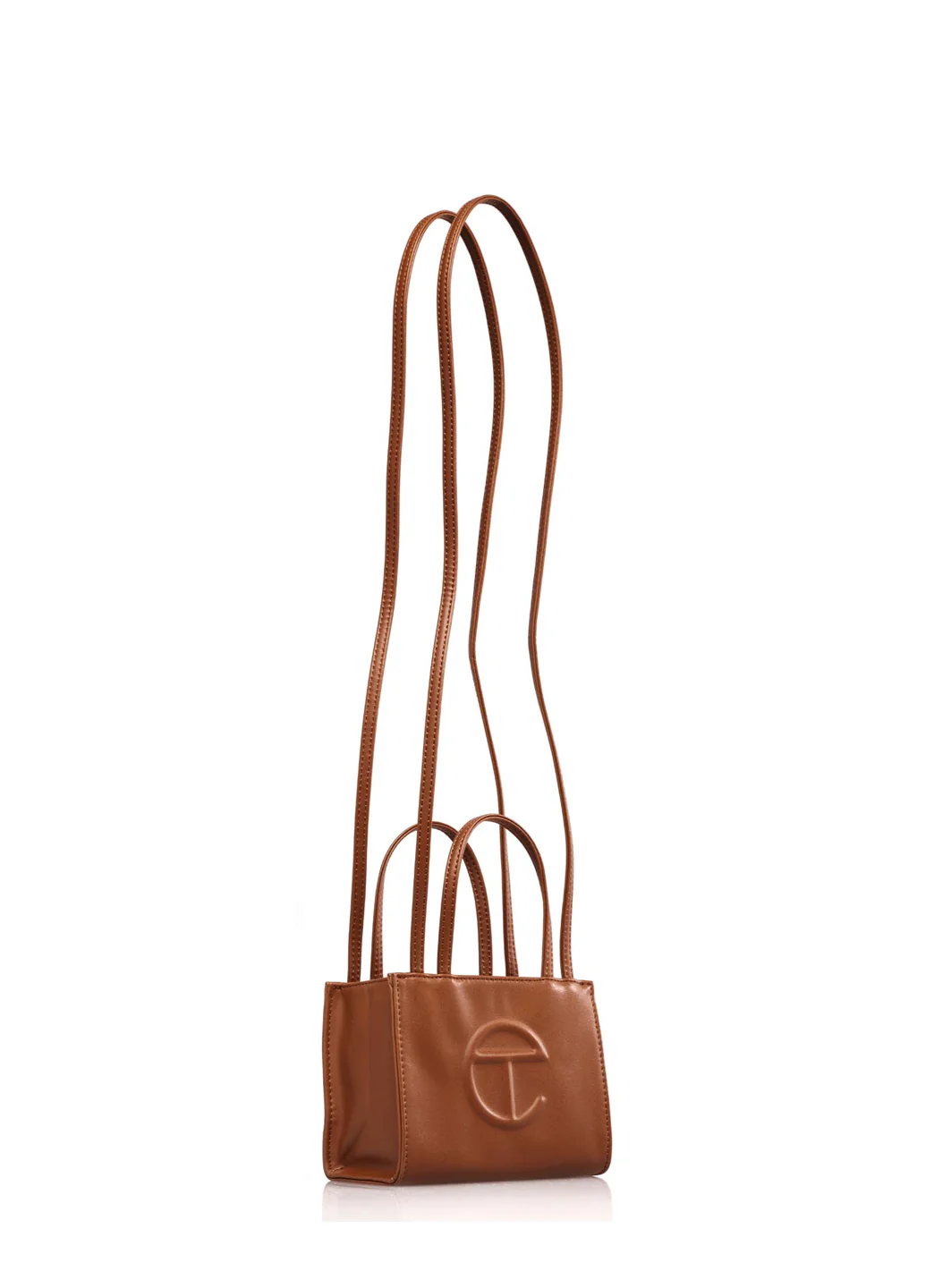 Культова сумка для покупок - практична сумка на кожен день. Вона має подвійні ремінці (ручки та ремінці через плече), тиснений логотип і магнітну застібку. Виготовлена зі штучної шкіри з підкладкою з твілу, сумка поставляється в мішечку зі шнурком з 100% бавовни із трафаретним логотипом.