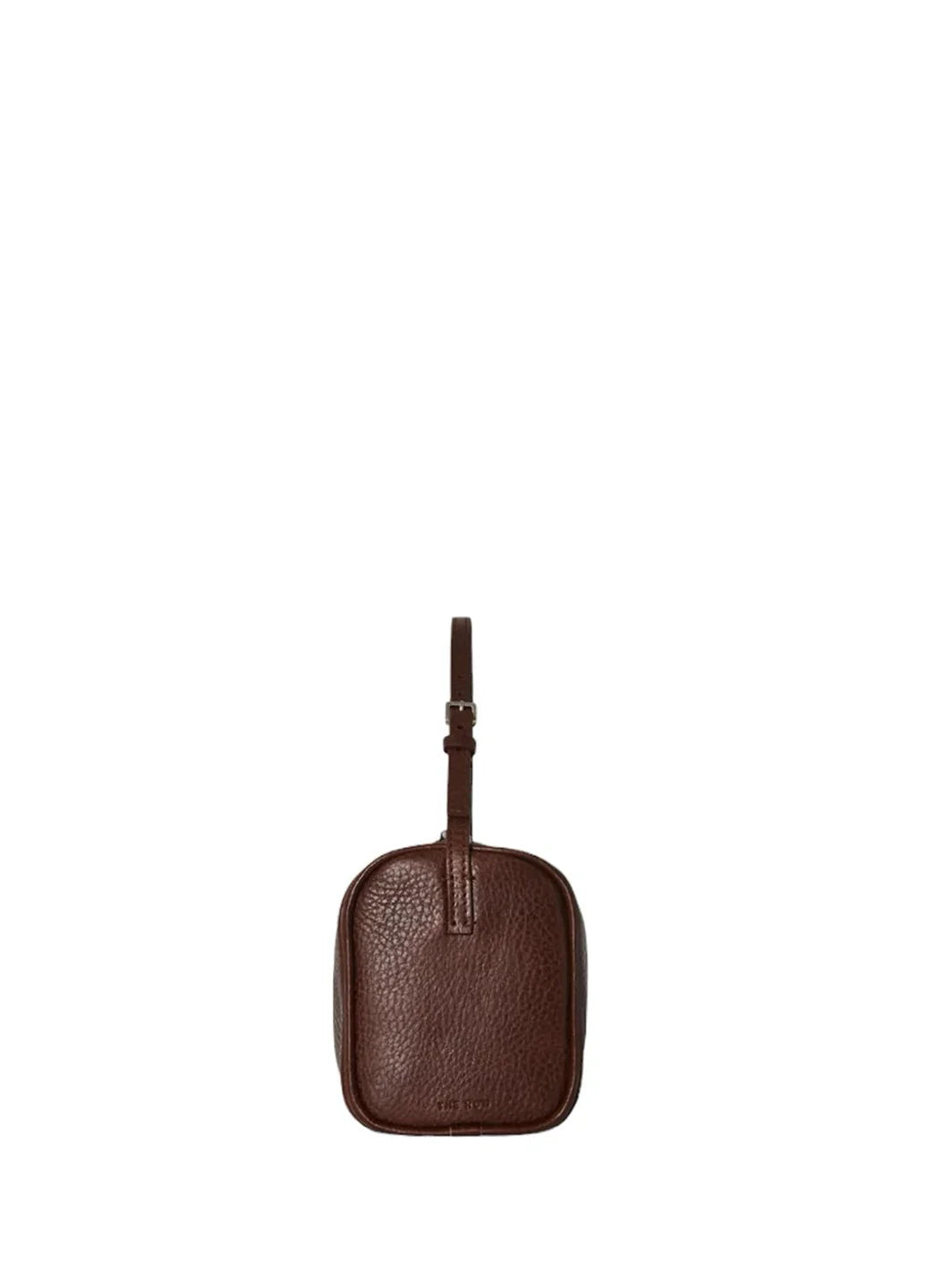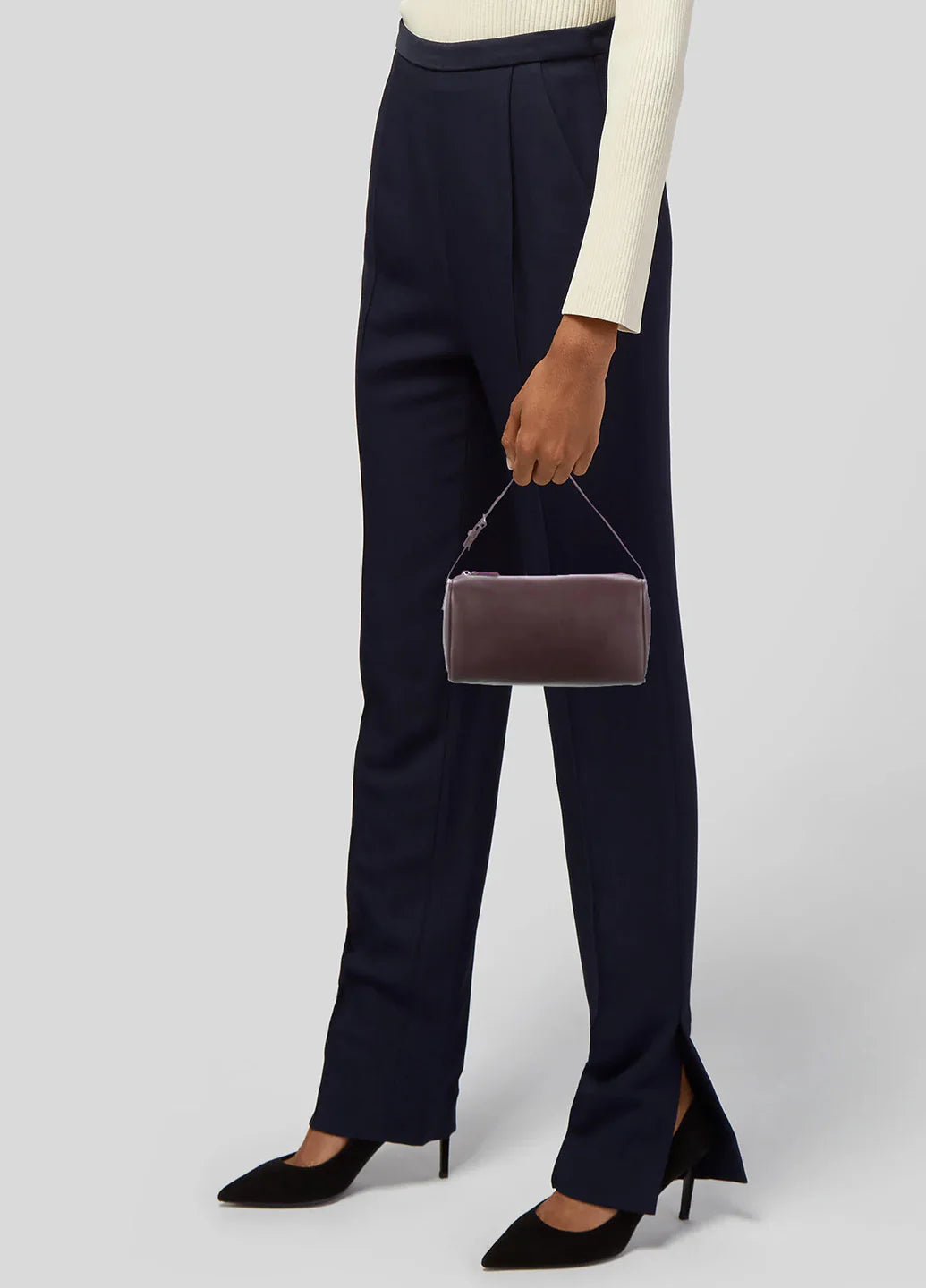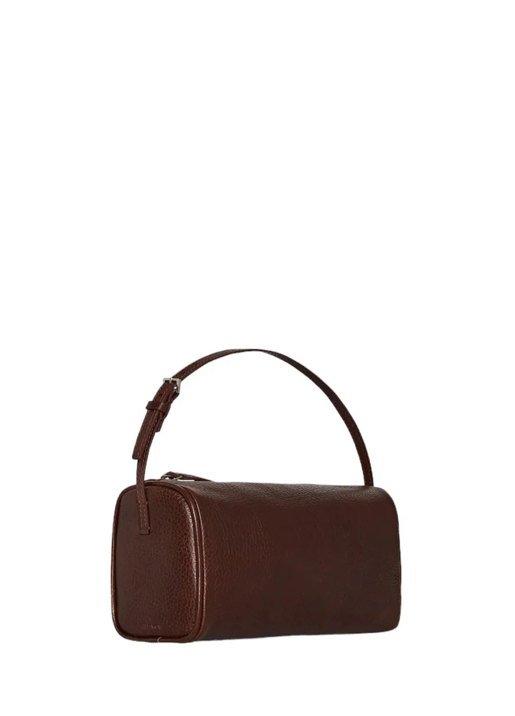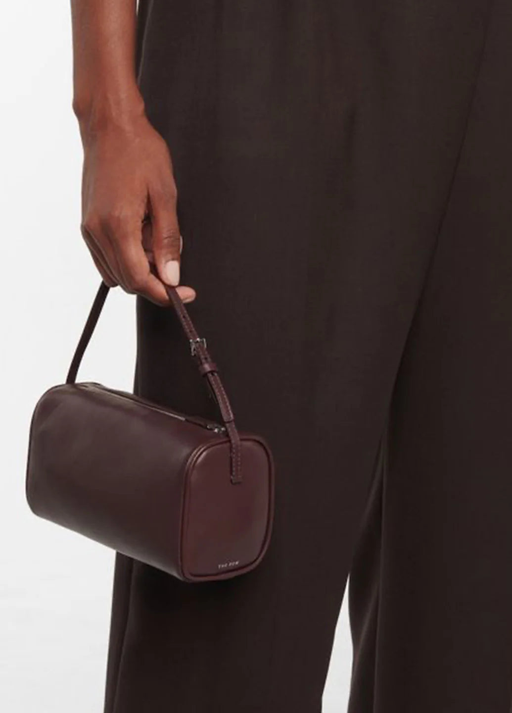 Сумка з дрібнозернистої натуральної шкіри має плавно закруглені краї, шкіряний кант і регульований тонкий шкіряний ремінець.