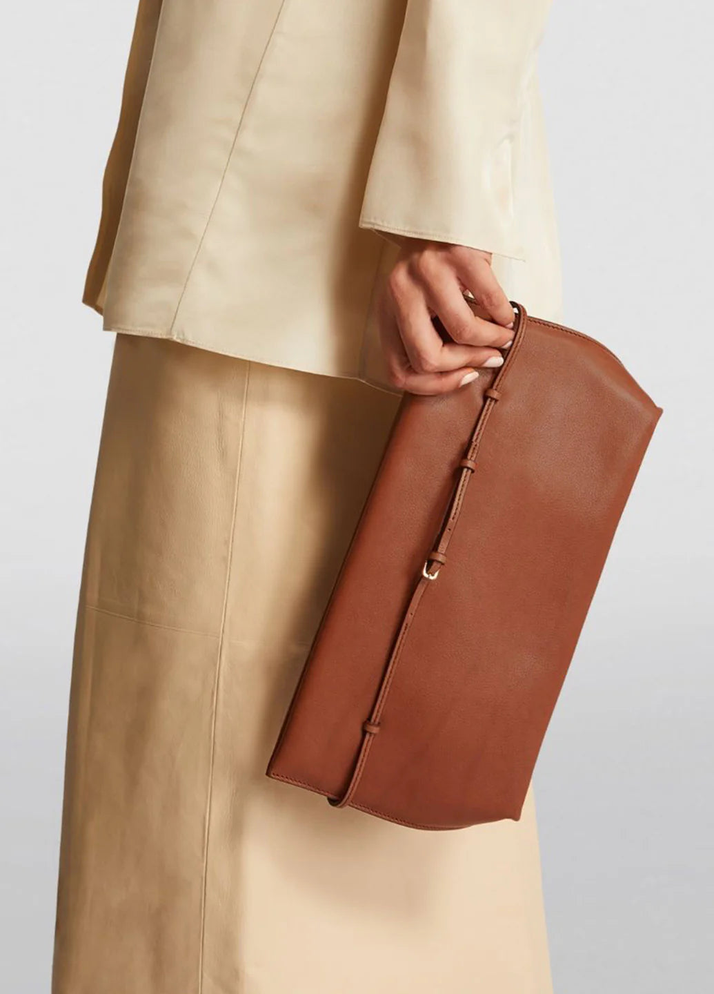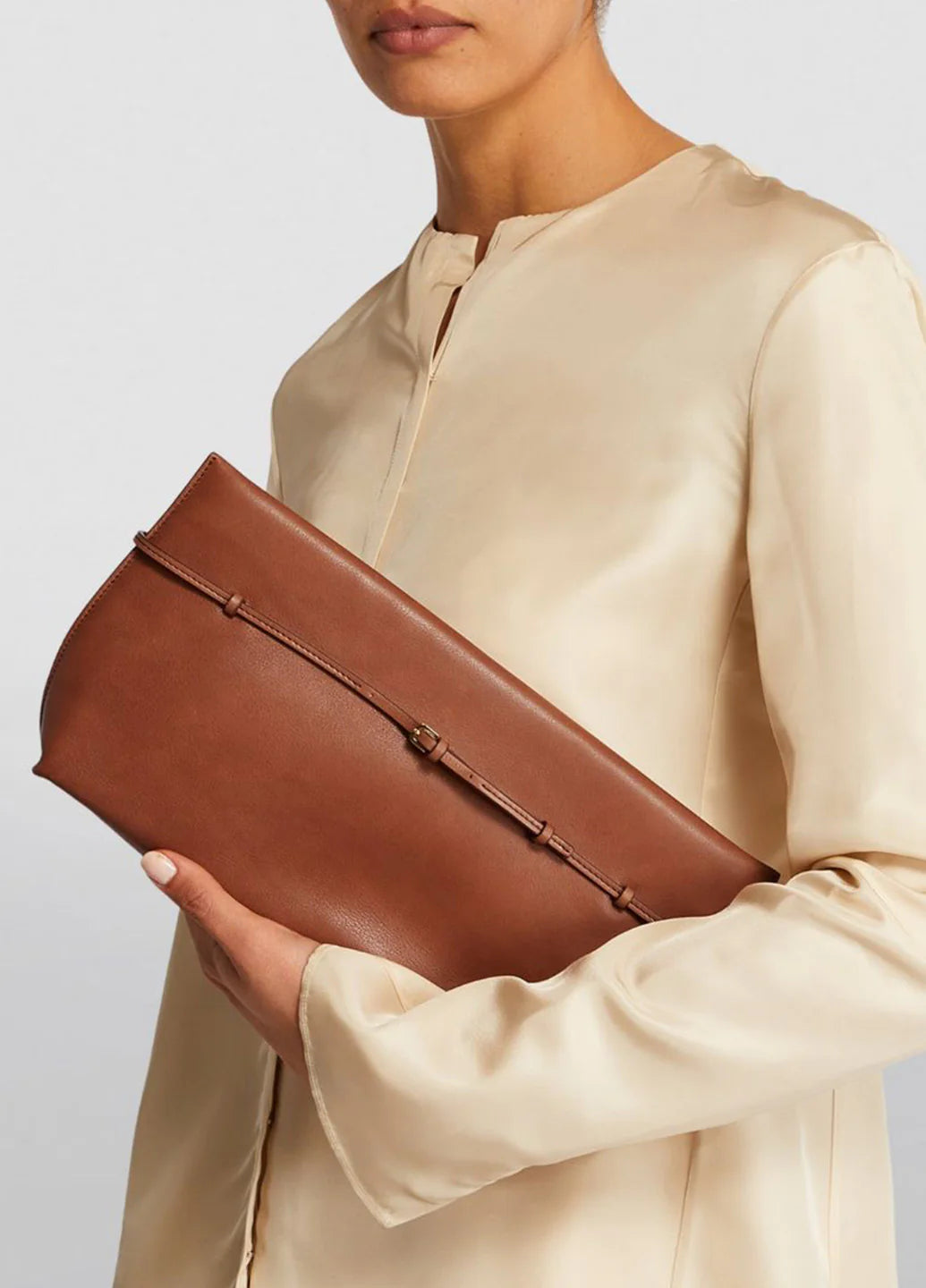 Фірмовий стиль The Row — це втілення стриманої елегантності: чисті лінії, розкішні матеріали та мінімалістичні деталі. Сумка-клатч Sienna повністю відповідає цій концепції, вирізняючись м’якою шкірою, делікатною пряжкою та витонченими пропорціями.
