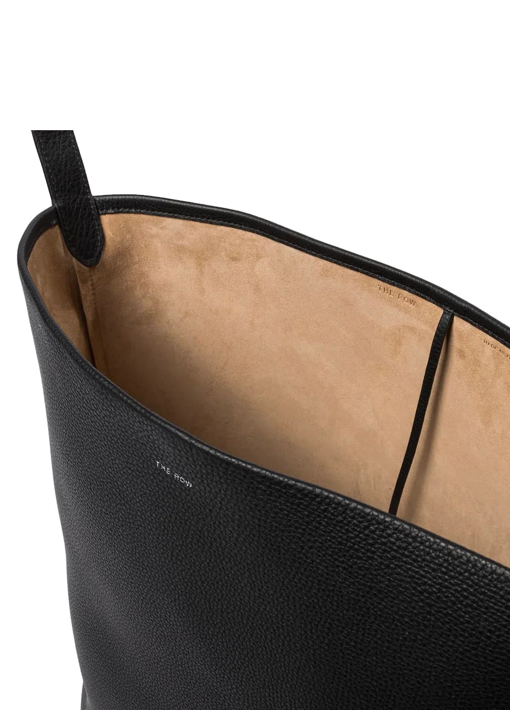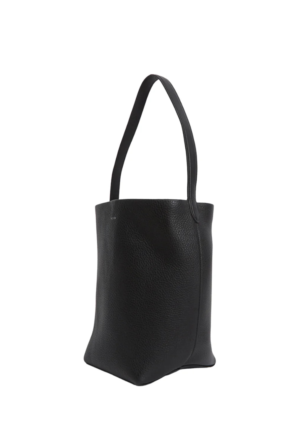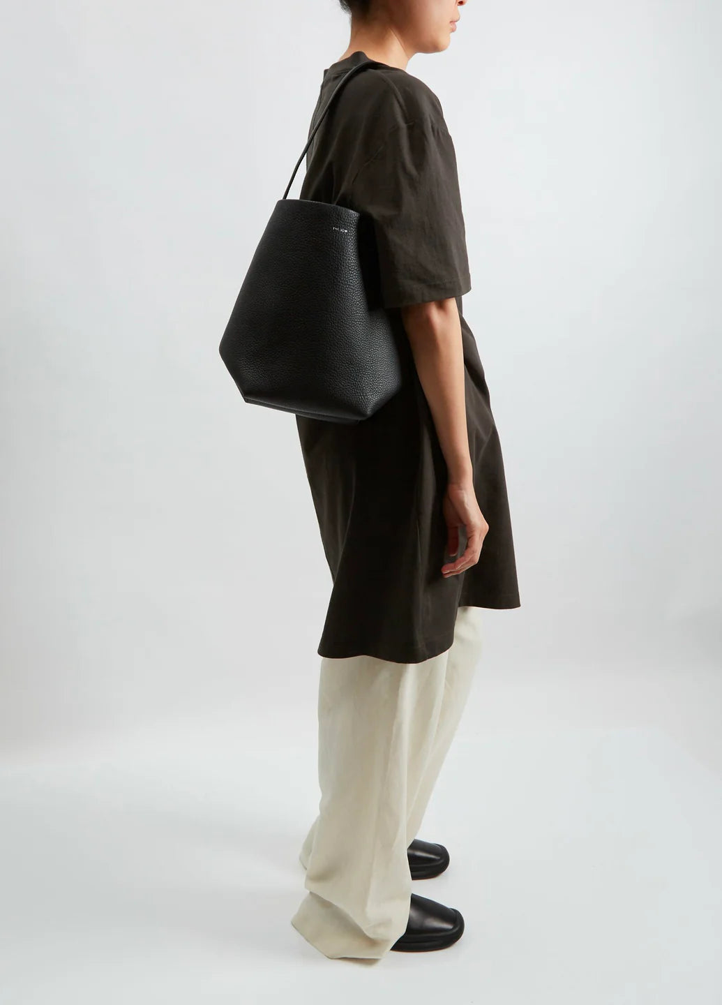 Класична сумка-тоут виготовлена з зернистої натуральної шкіри, має внутрішню застібку та плоску ручку.