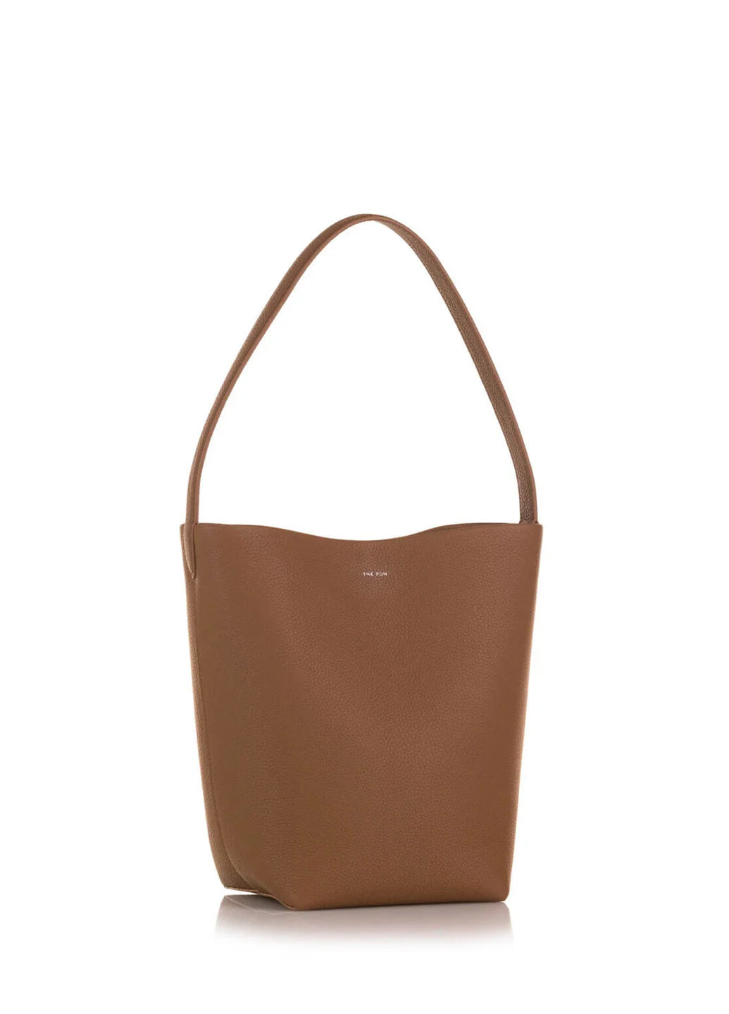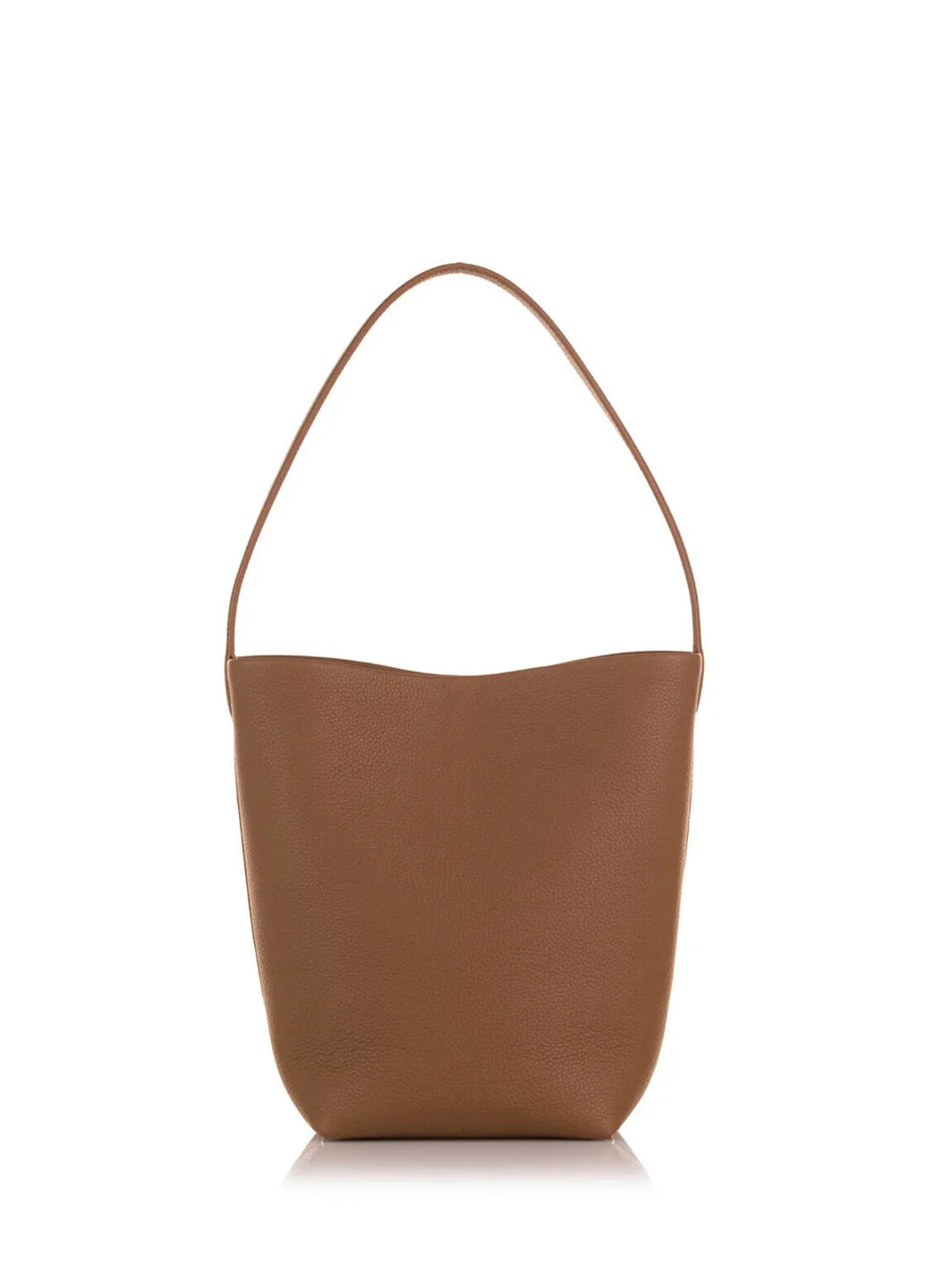 Класична сумка-тоут виготовлена з зернистої натуральної шкіри, має внутрішню застібку та плоску ручку.