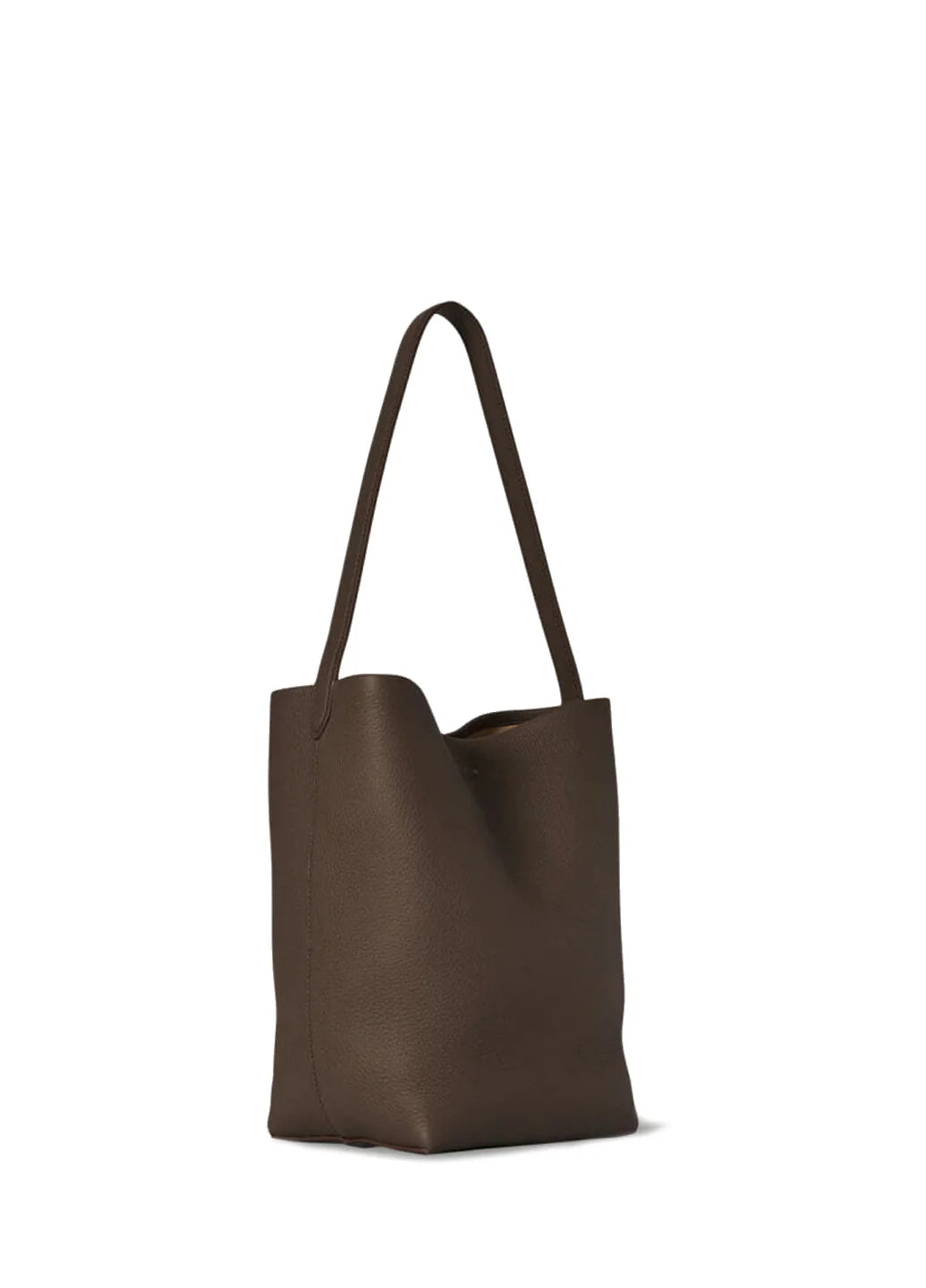 Класична сумка-тоут виготовлена з зернистої натуральної шкіри, має внутрішню застібку та плоску ручку.