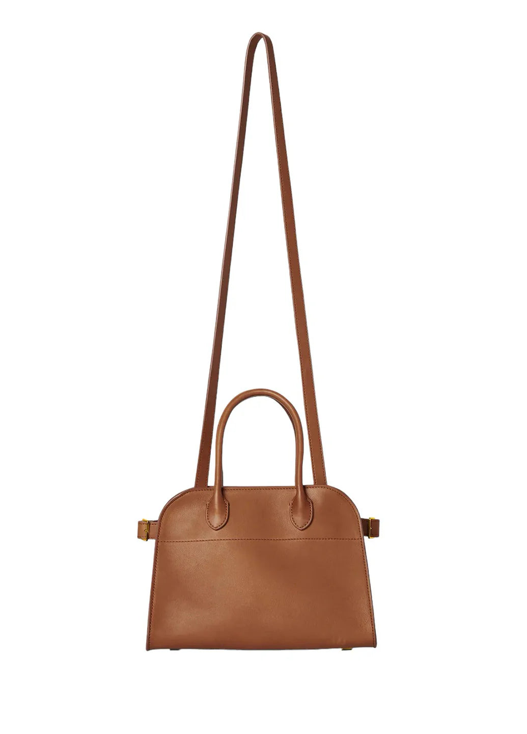 Сумка Margaux від The Row — це елегантна модель із м’якою структурою та верхньою ручкою, виконана з полірованої шкіри. Вона оснащена ремінними бічними панелями та внутрішньою застібкою-блискавкою.