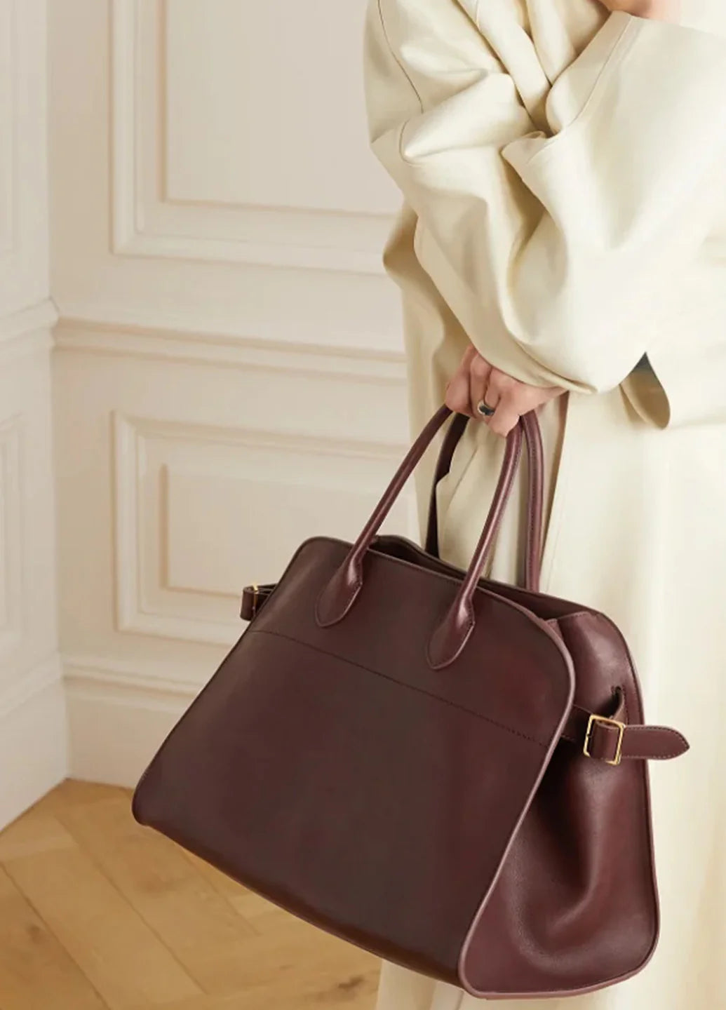 Сумка Margaux від The Row — це елегантна модель із м’якою структурою та верхньою ручкою, виконана з полірованої шкіри. Вона оснащена ремінними бічними панелями та внутрішньою застібкою-блискавкою.