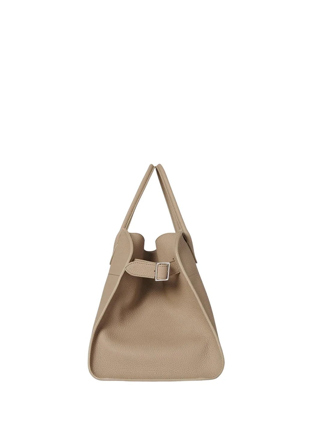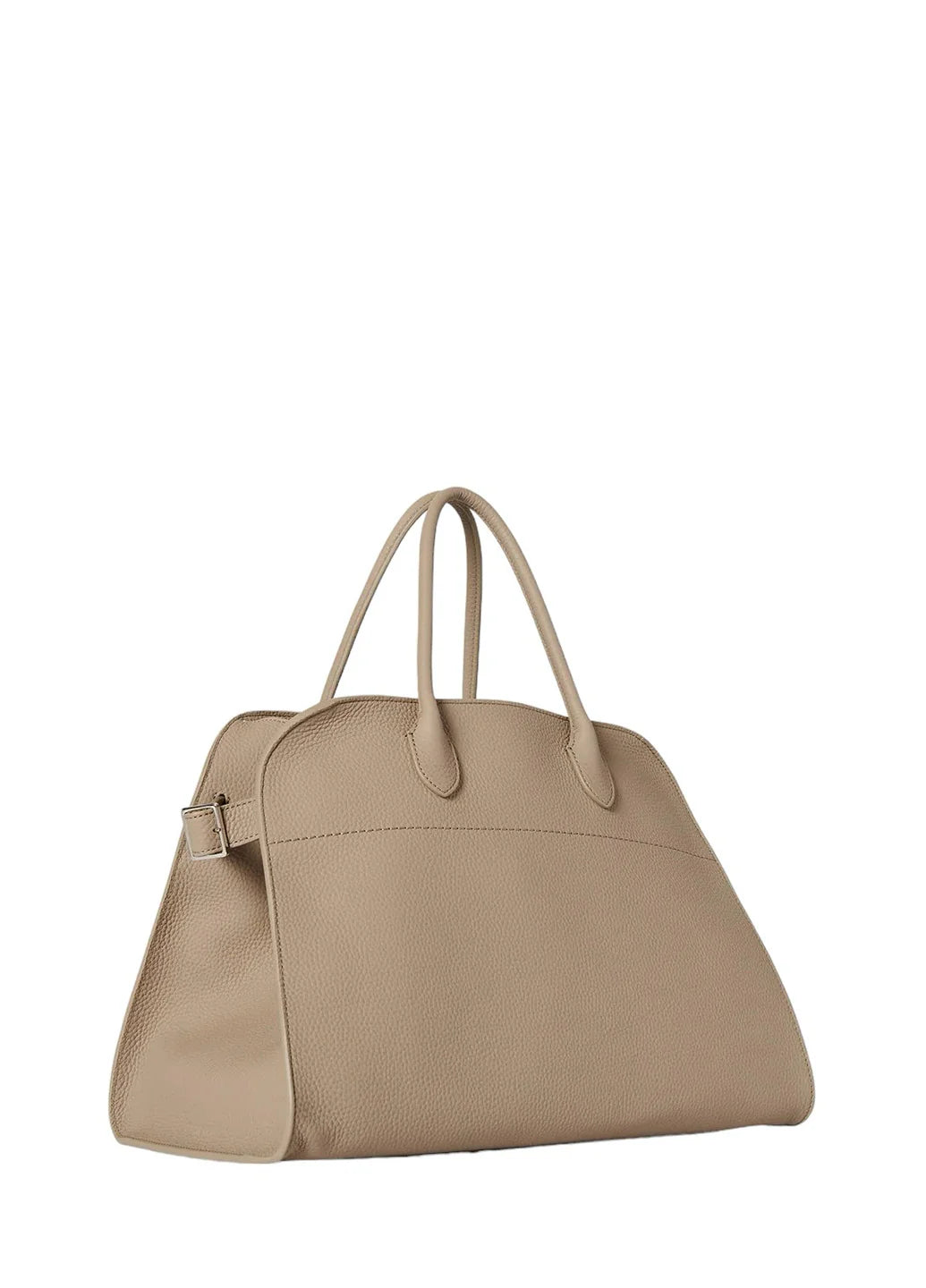 Сумка Margaux від The Row — це елегантна модель із м’якою структурою та верхньою ручкою, виконана з натуральної зернистої шкіри. Вона оснащена ремінними бічними панелями та внутрішньою застібкою-блискавкою.
