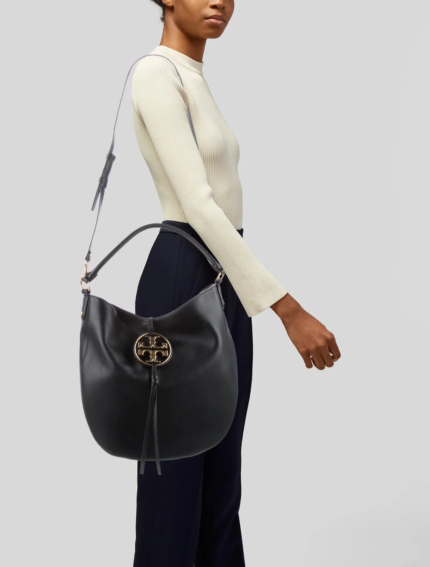 Tory Burch Miller Metal-Logo Slouchy Hobo Black