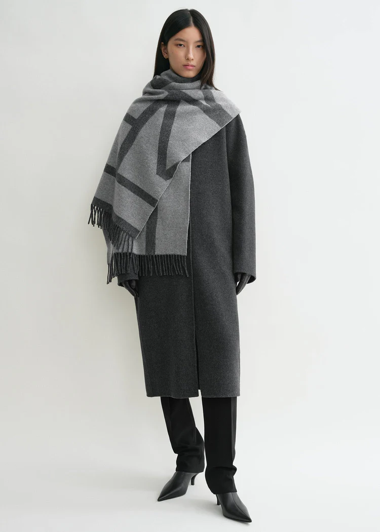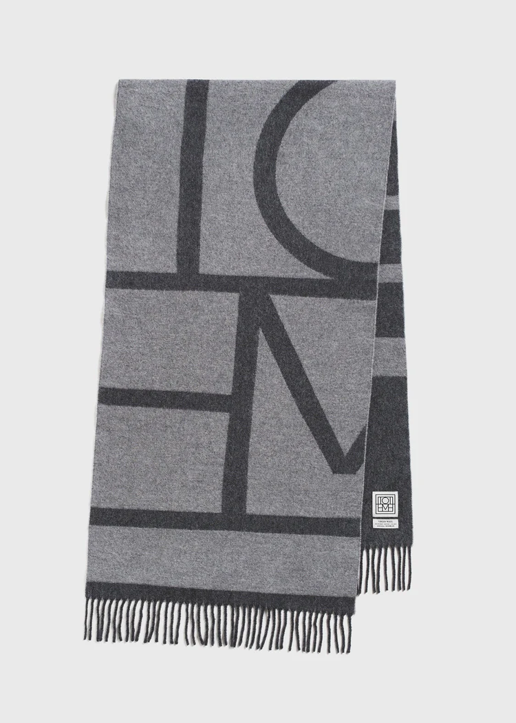Toteme Monogram Jacquard Wool Scarf Dark Grey Melange