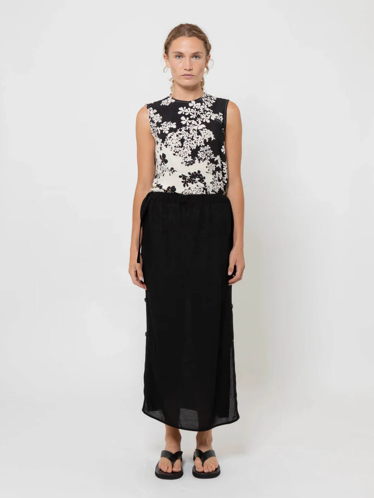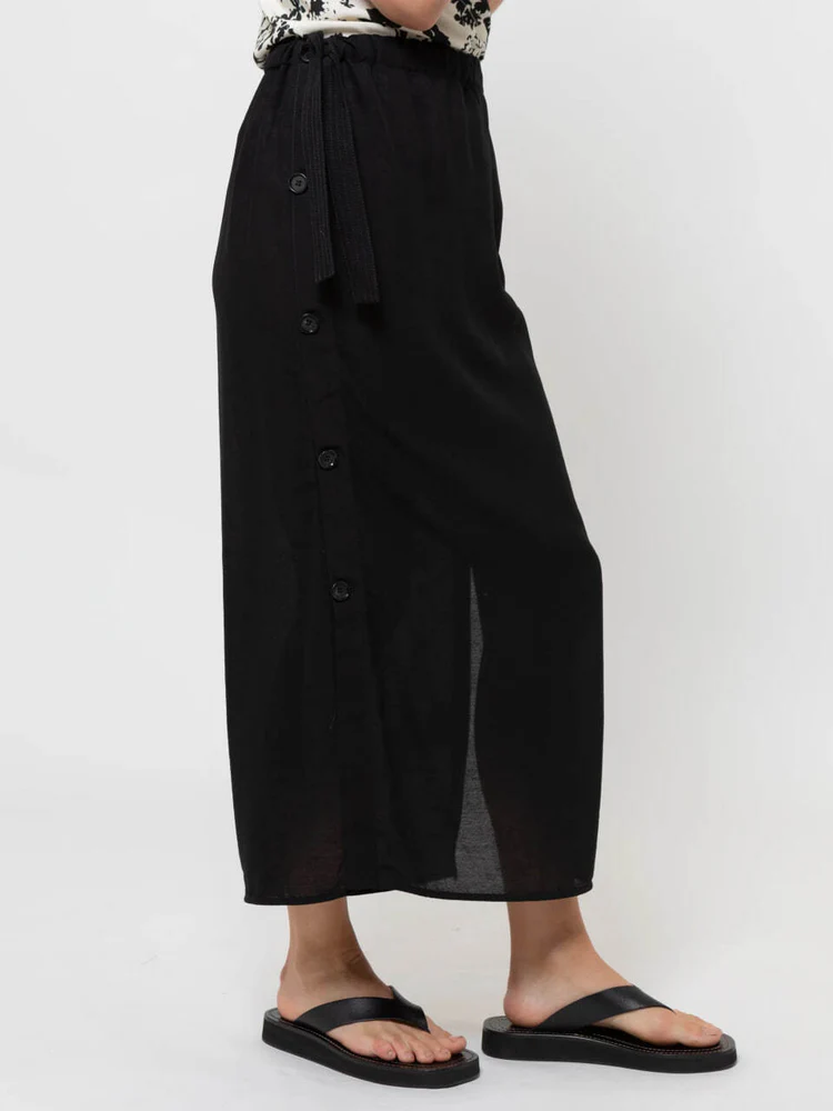 Спідниця TOTEME вражає своєю легкістю та неймовірною м'якістю, завдяки використанню віскози з додаванням шовку. Її довгий, розслаблений силует підкреслений талією зі шнурком та боковими роговими ґудзиками, що додають певного шарму. Ця спідниця чудово підійде для різних заходів — від офісу до пляжу. Ви зможете створити безліч стильних образів, поєднуючи її з різними верхами та взуттям.